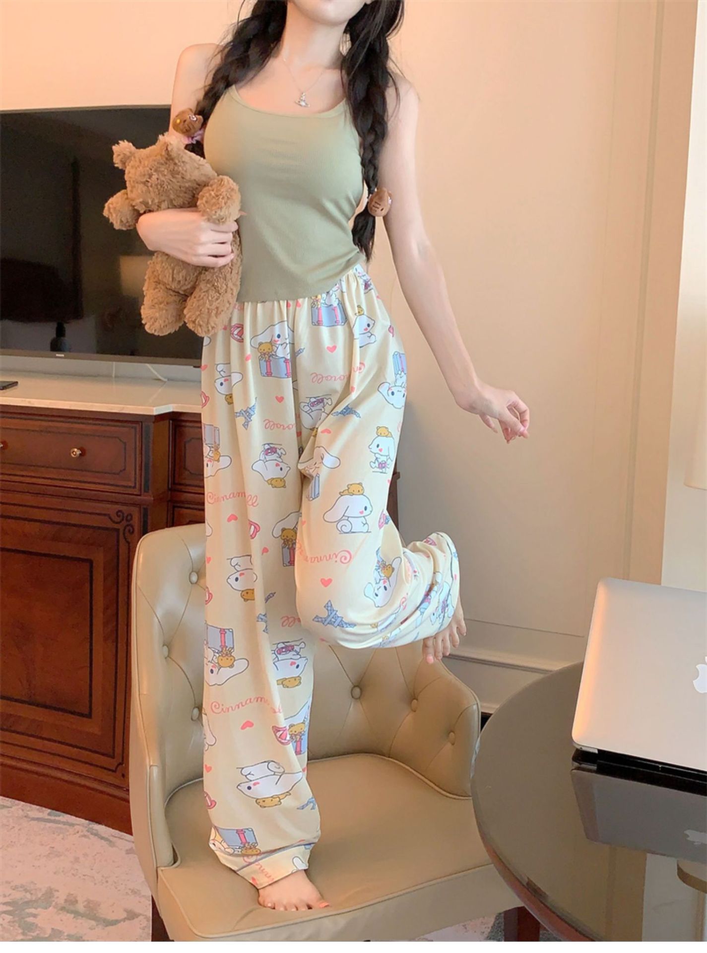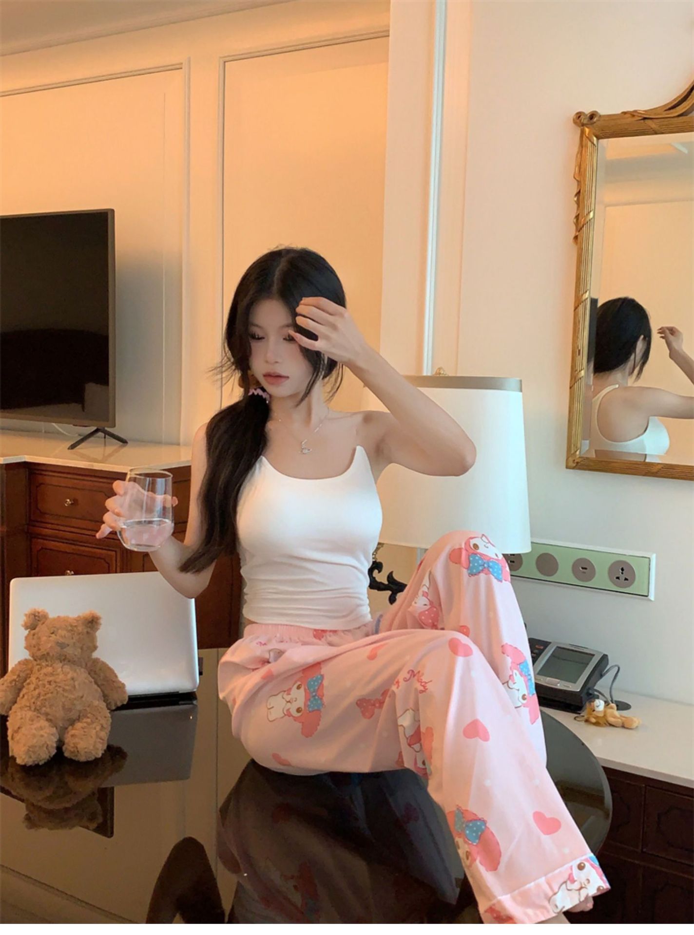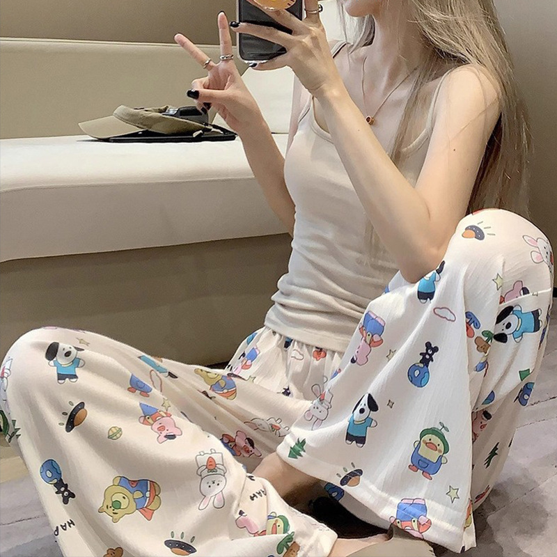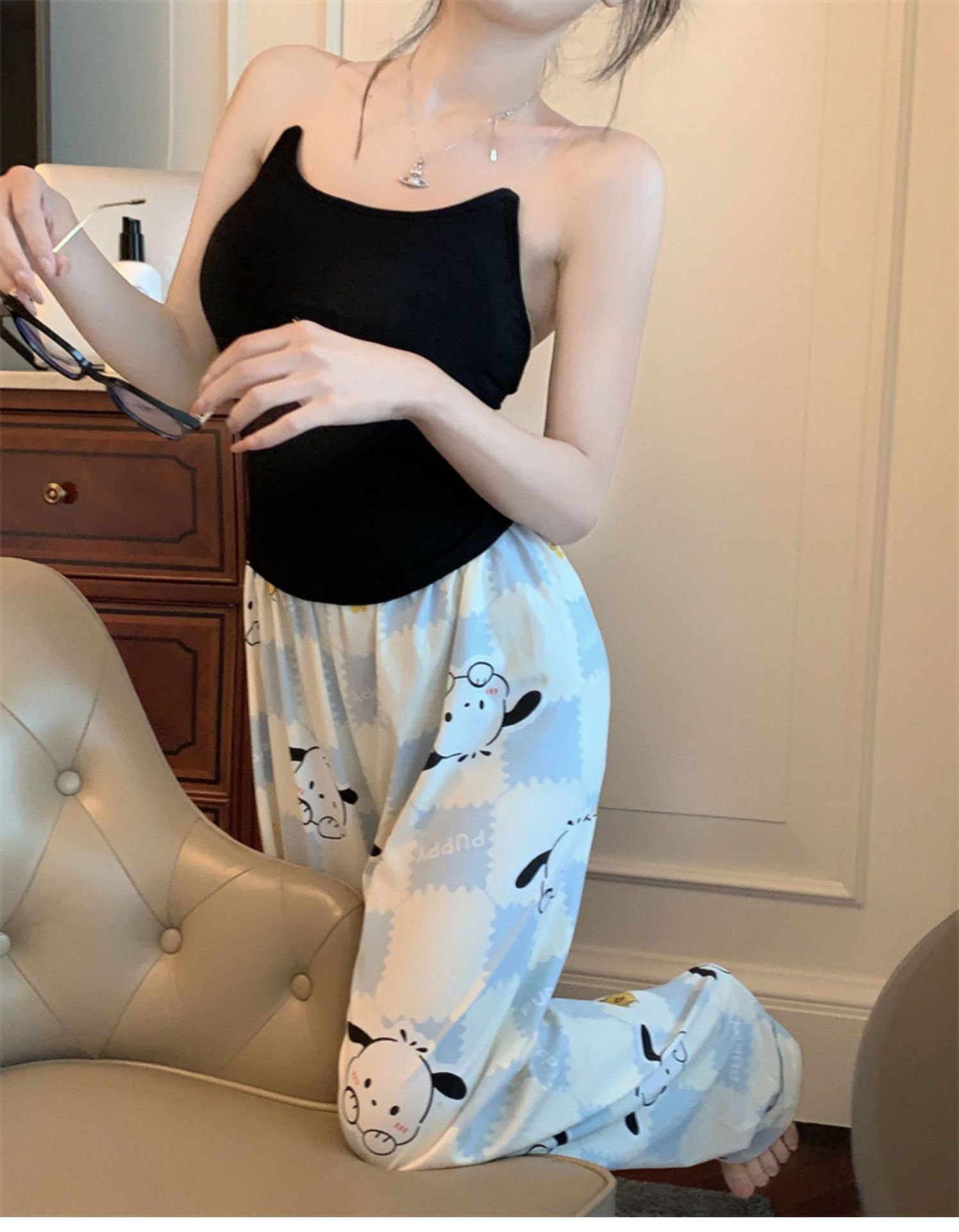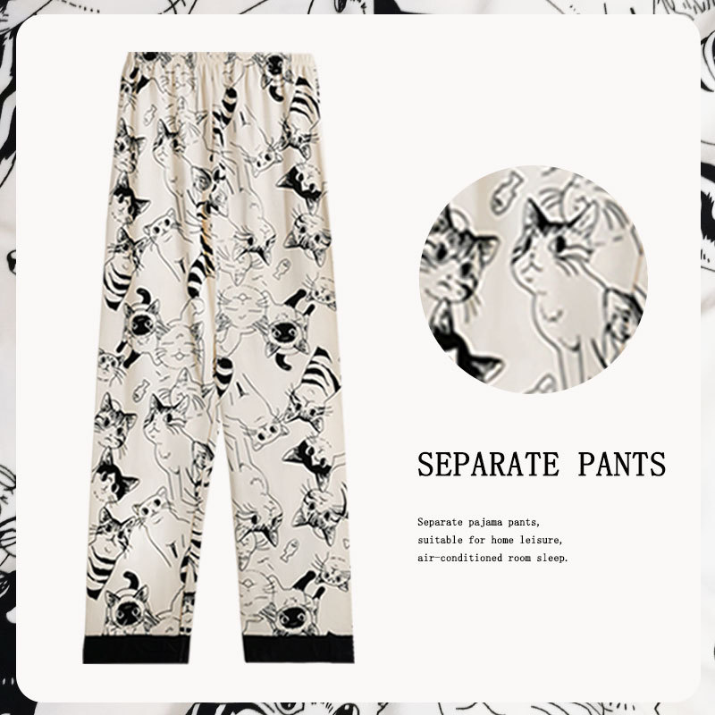 Moe Fun 만화 걷는 남녀 파자마 바지 봄과 가을 사이버 축하 헬로 키티 크레용 신 뉴 코튼 홈 에어컨 바지스토어 가기