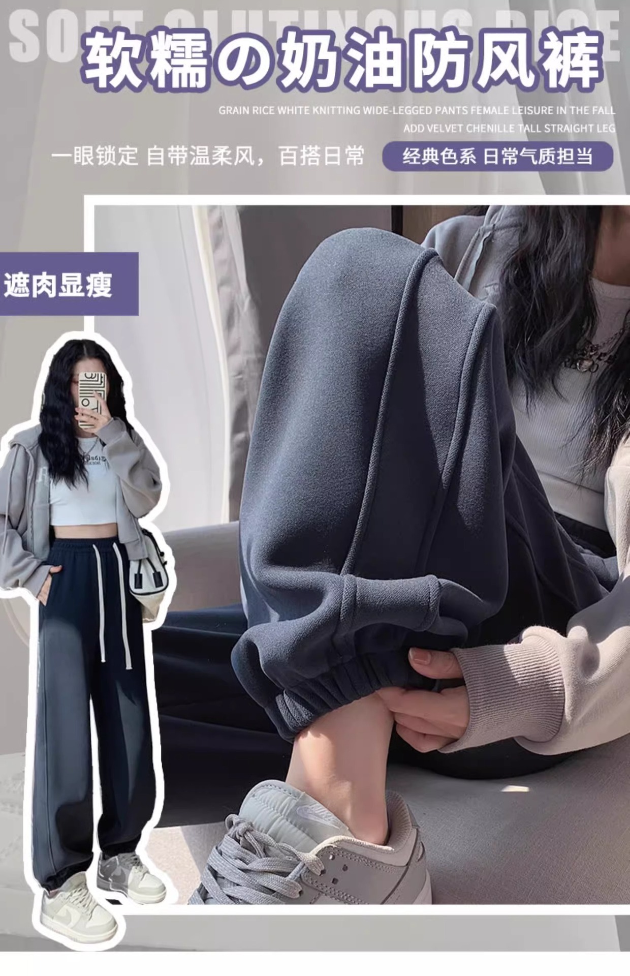 루즈핏 방풍 기모 여성용 2025 봄 신상 루즈핏 스웨트팬츠 인기 방풍 팬츠 캐주얼 기모 가을 겨울스토어 가기