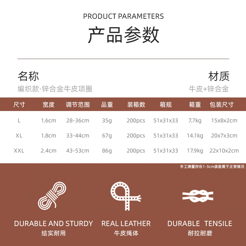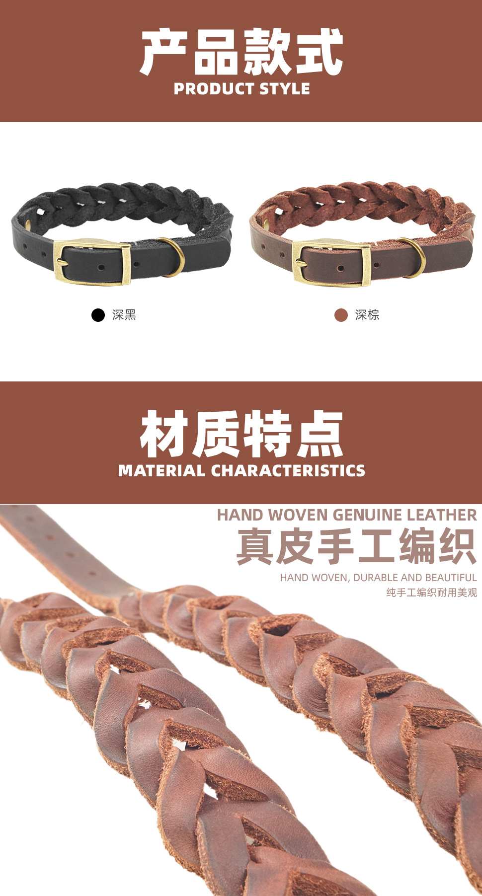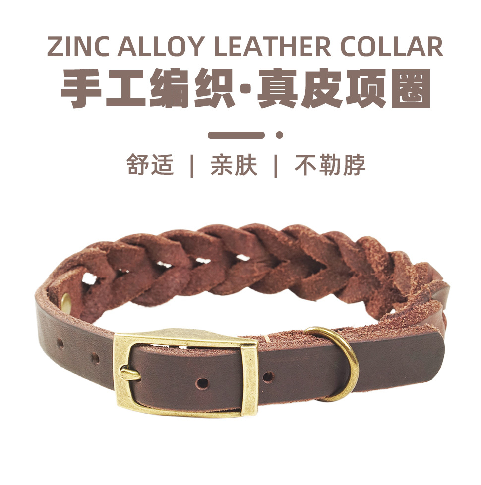 2024跨境新款真牛皮头层皮宠物项圈,纯手工编织款,质感细腻结实耐用,可定制颜色/包装/LOGO,100PCS即可起订,专供国外各大电商平台(ins,脸书,线下商超,国际站,速卖通,亚马逊,eBay等,欢迎前来询盘!