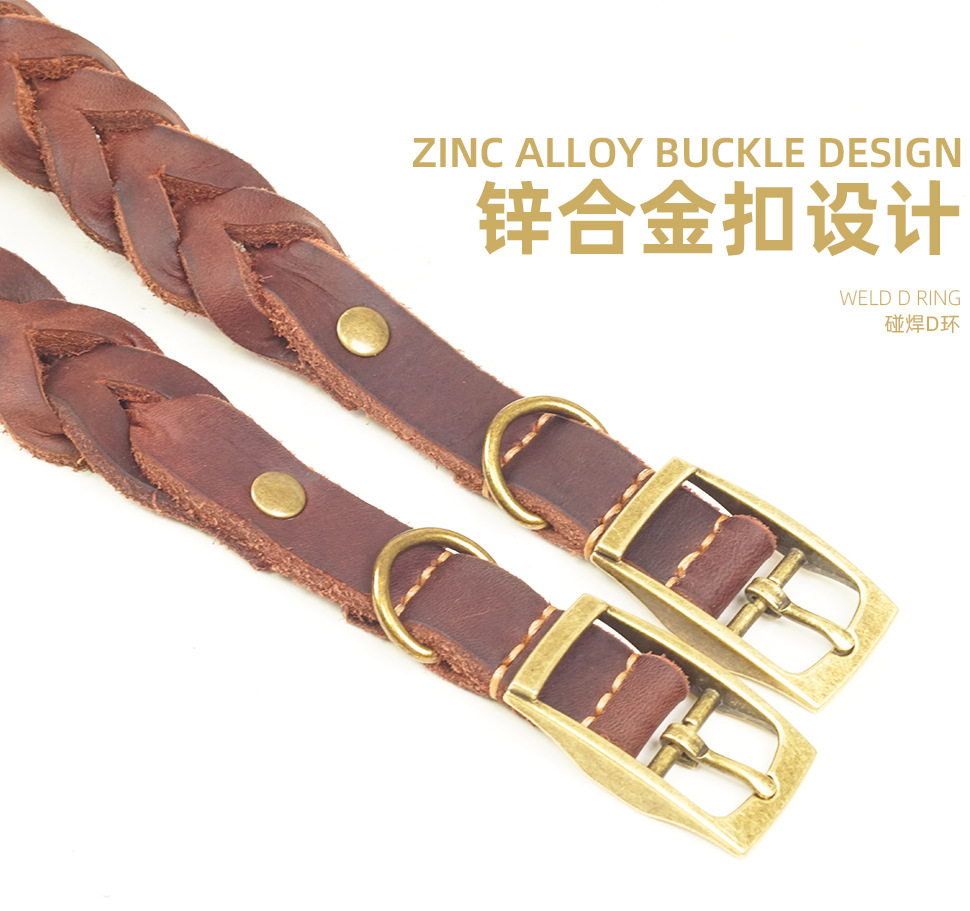 크로스보더 공장 직판 천연 소가죽 짜임 애완동물 목줄 강아지 리드줄 중소형견 목줄 도매스토어 가기