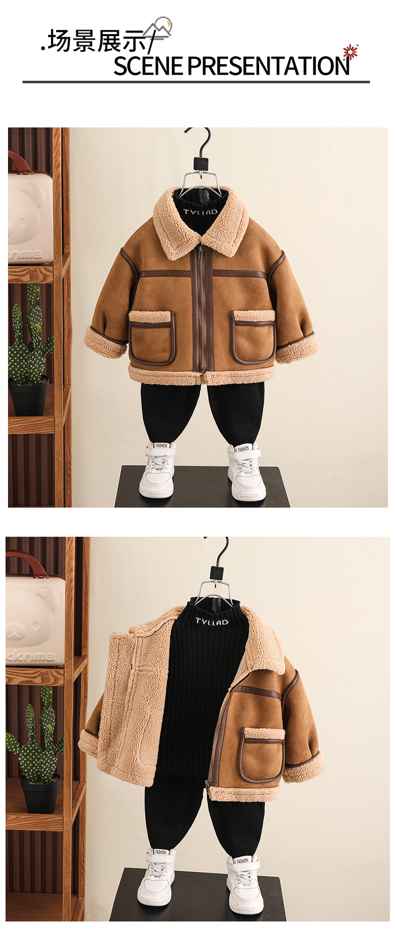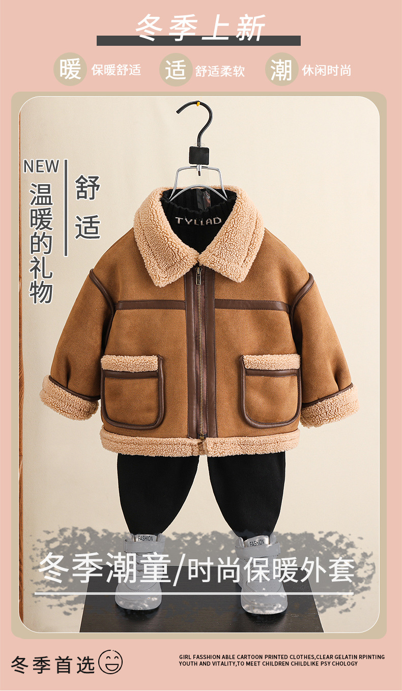 소년 모피 일체형 벨벳 재킷 가을, 겨울 새로운 스타일 어린이 겨울 두꺼운 따뜻하고 내한성 부드럽고 통기성이 뛰어나며 방풍스토어 가기