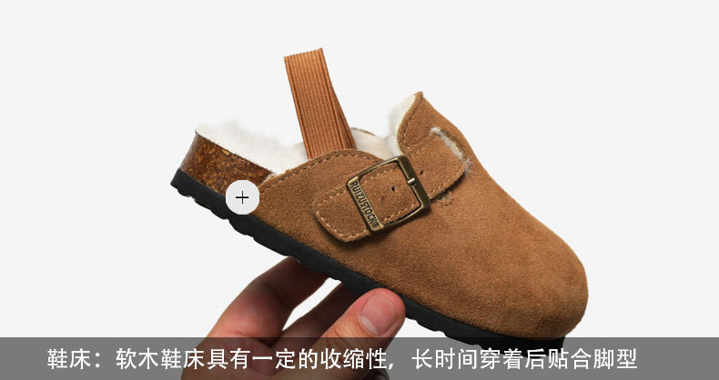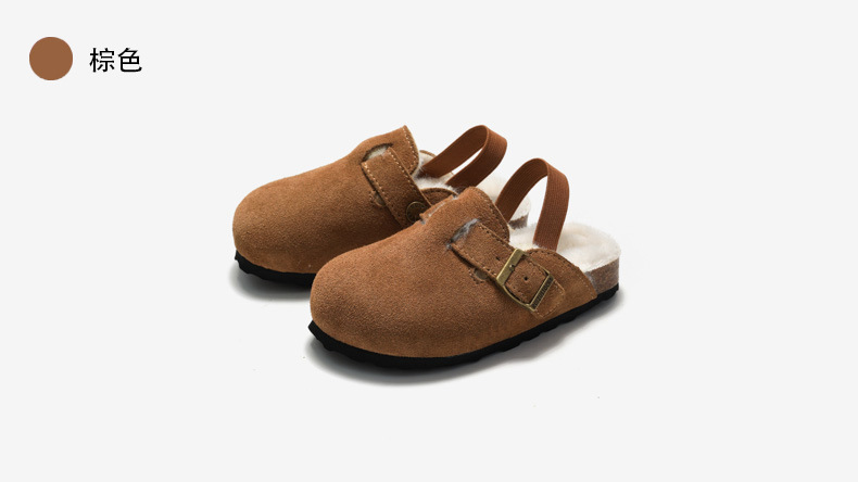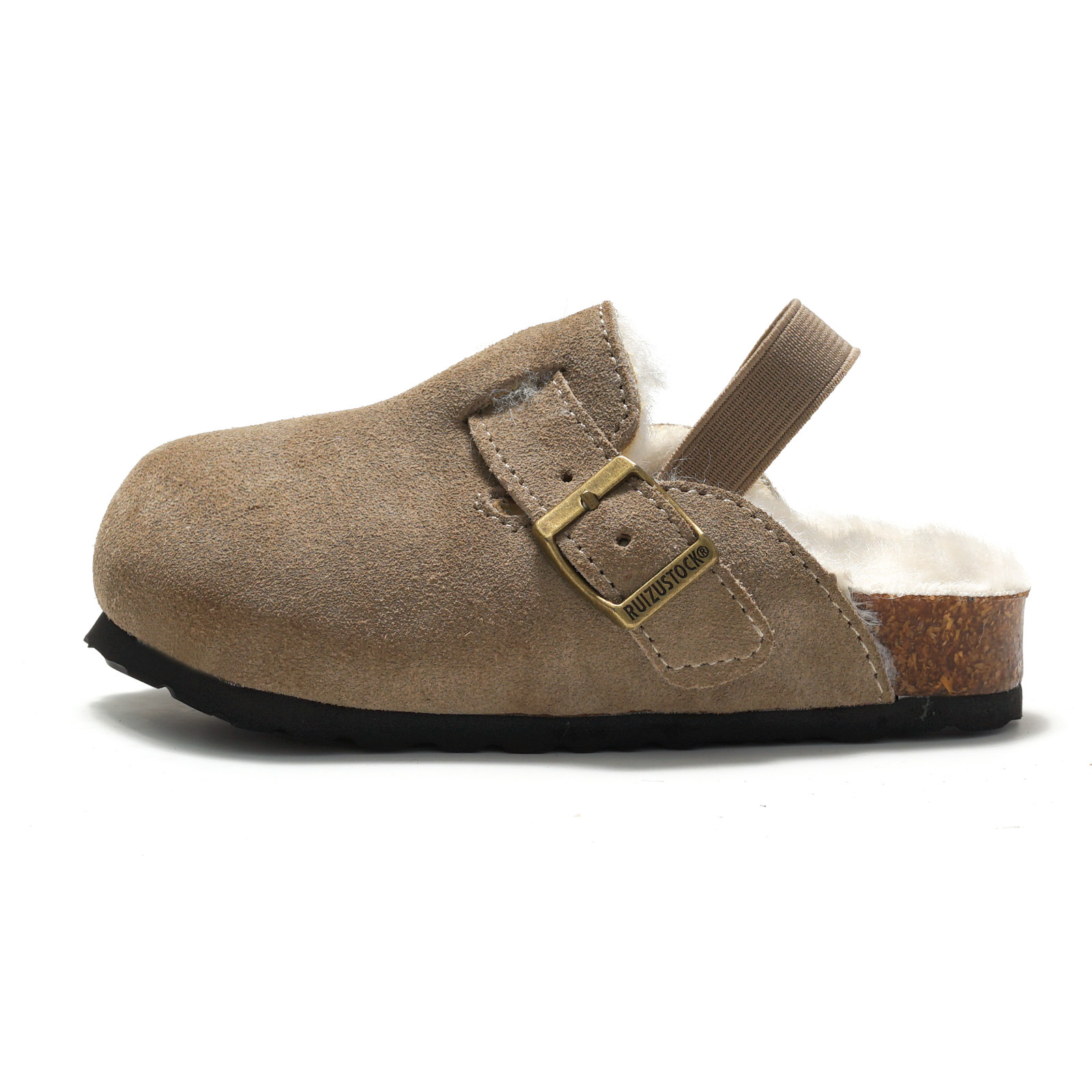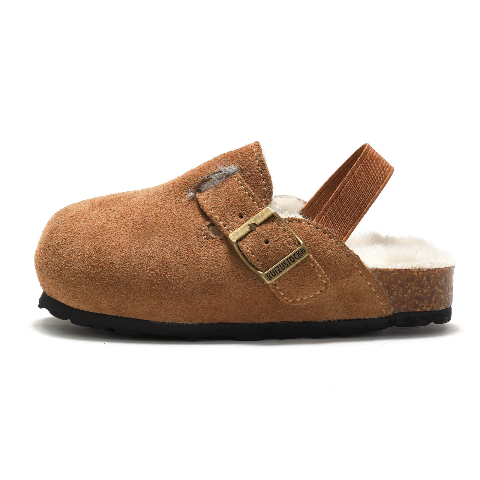 RUIZUSTOCK 겨울 새로운 어린이 코르크 샌들 코튼 보이즈 코튼 슈즈 따뜻한 여성용 야외 Cowhide