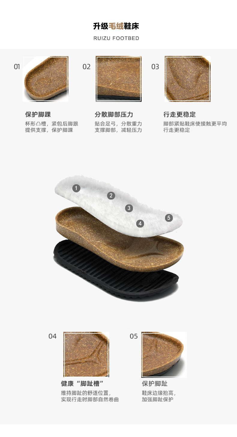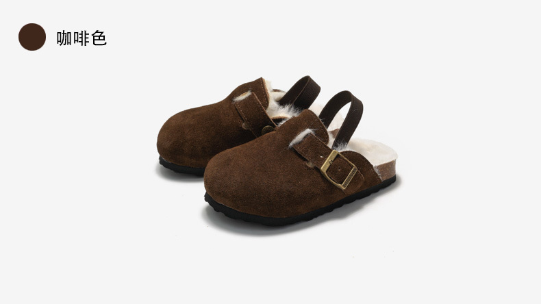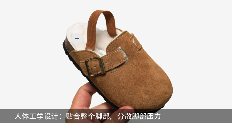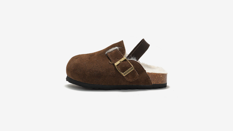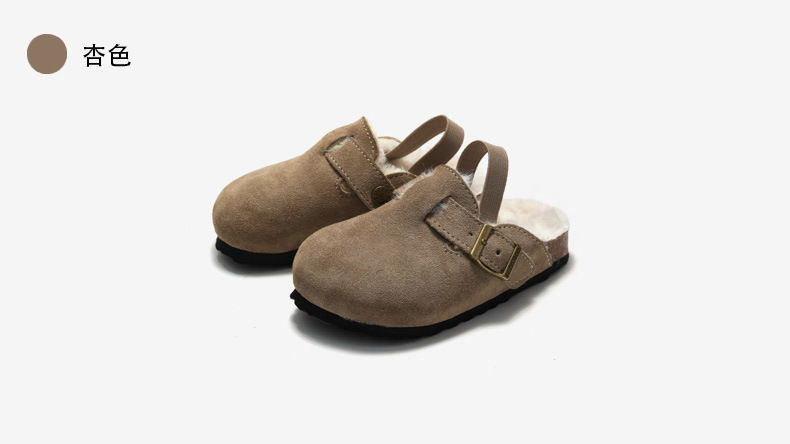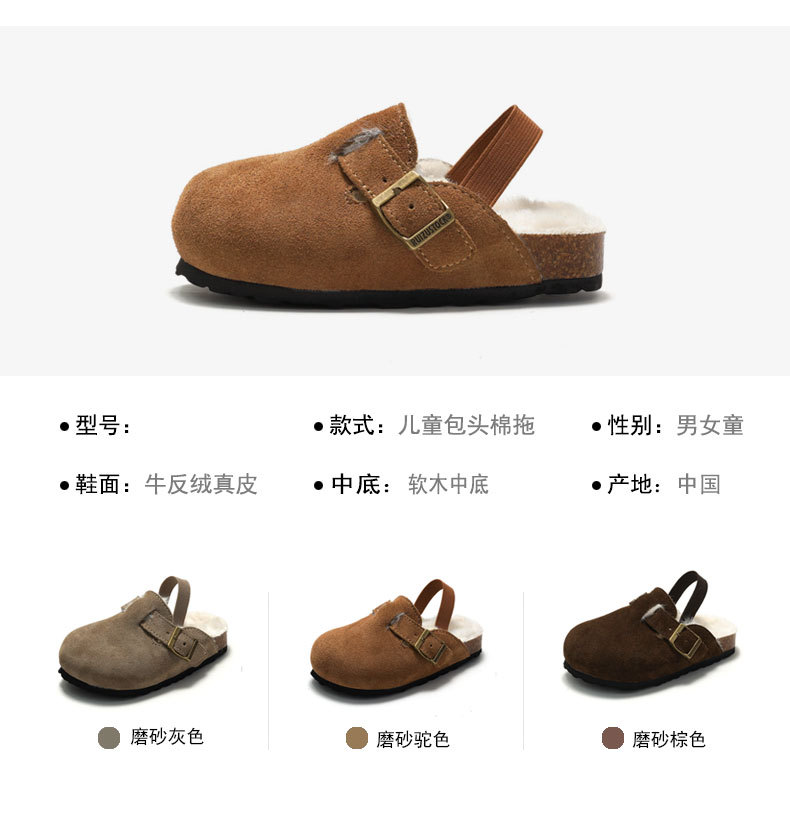 RUIZUSTOCK 겨울 새로운 어린이 코르크 샌들 코튼 보이즈 코튼 슈즈 따뜻한 여성용 야외 Cowhide