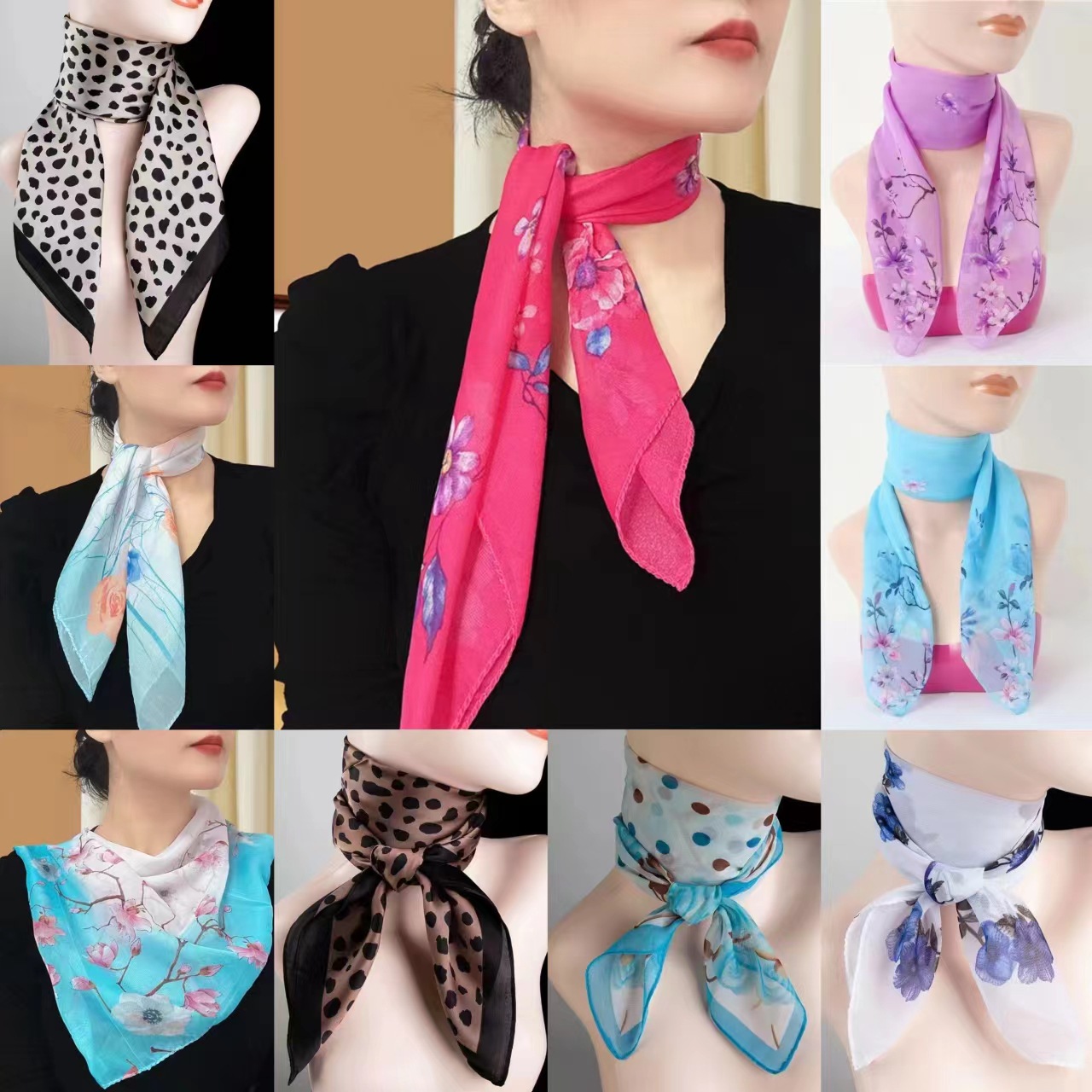 새로운 인쇄 작은 사각형 스카프 선물 스카프 60CM 쉬폰 조커 스카프 작은 스카프 터번 공장 도매