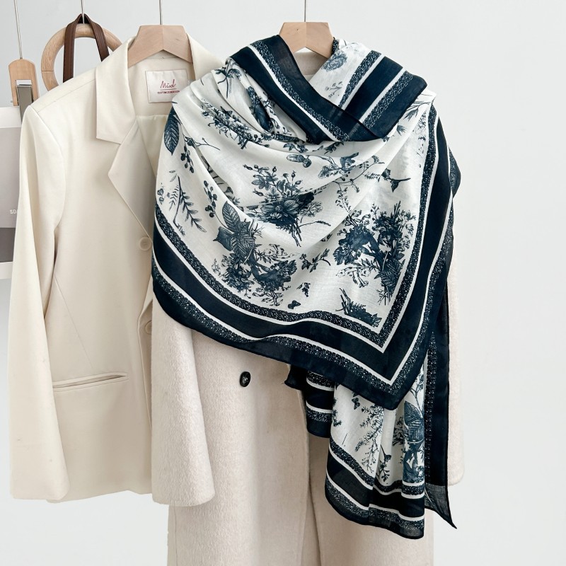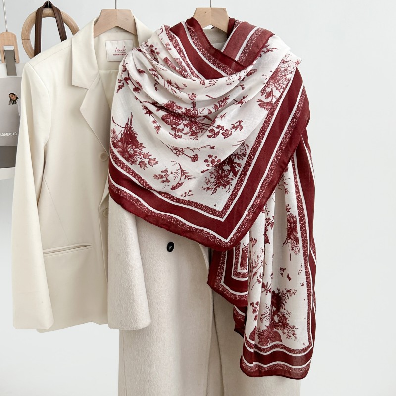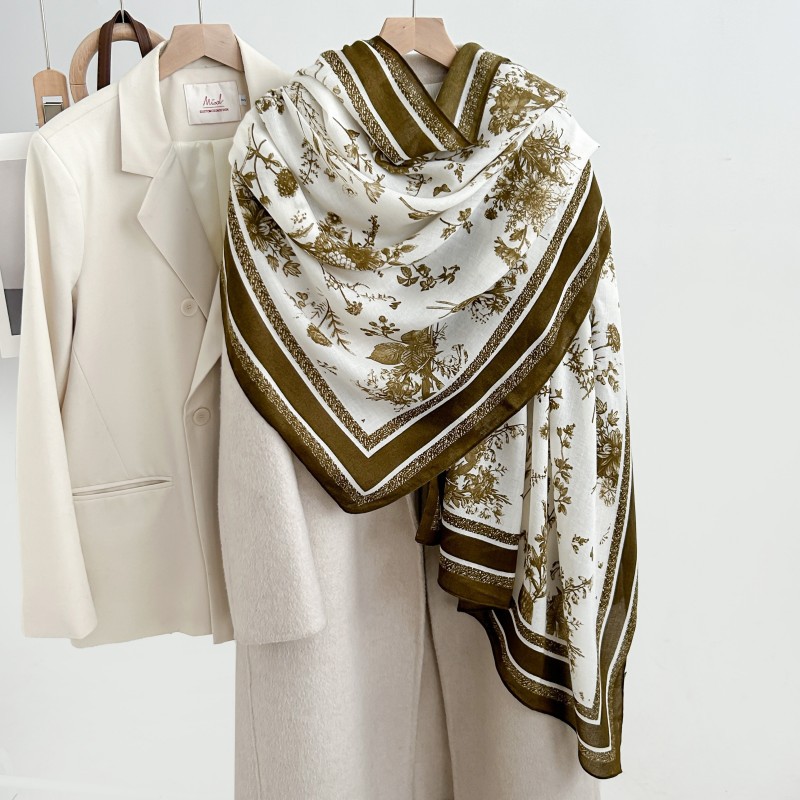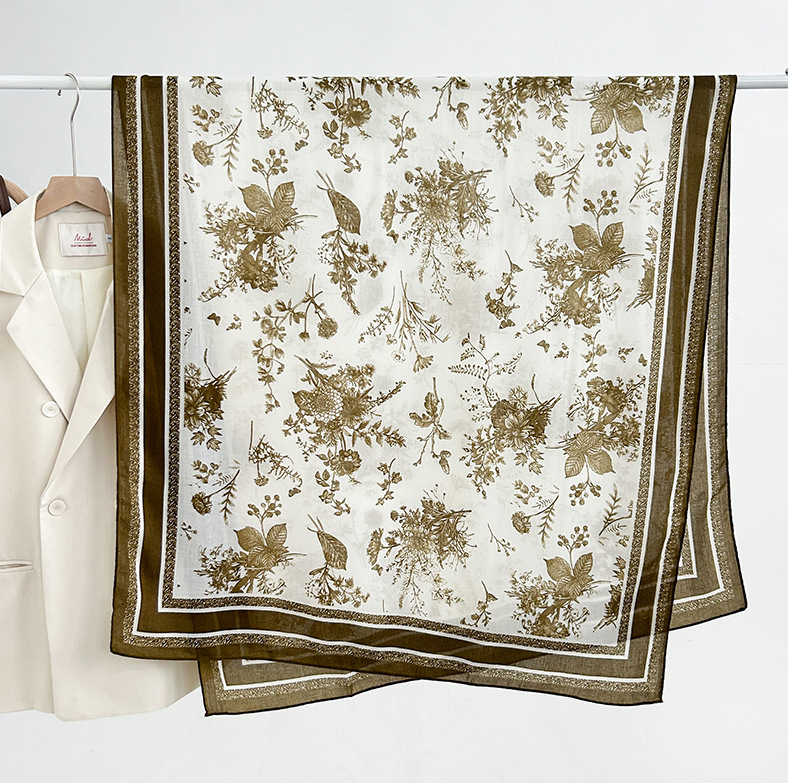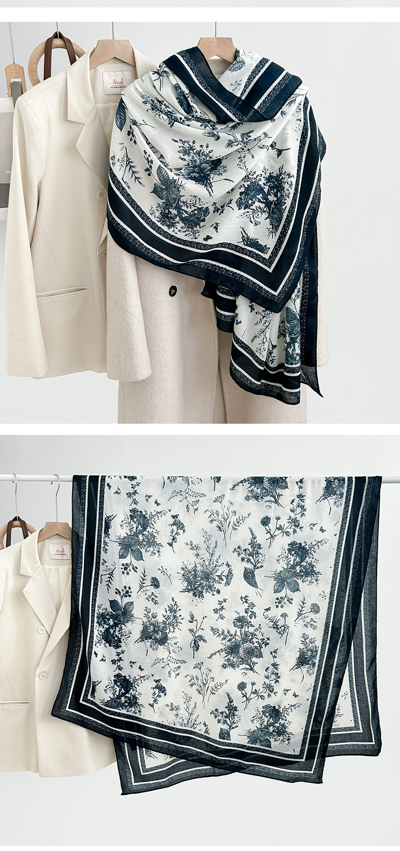 새로운 꽃 인쇄 골동품 새로운 중국 스타일 목도리 올 시즌 유니버설 롱 타월 올 매치 예술적 빛 럭셔리 모조 실크 울 스카프