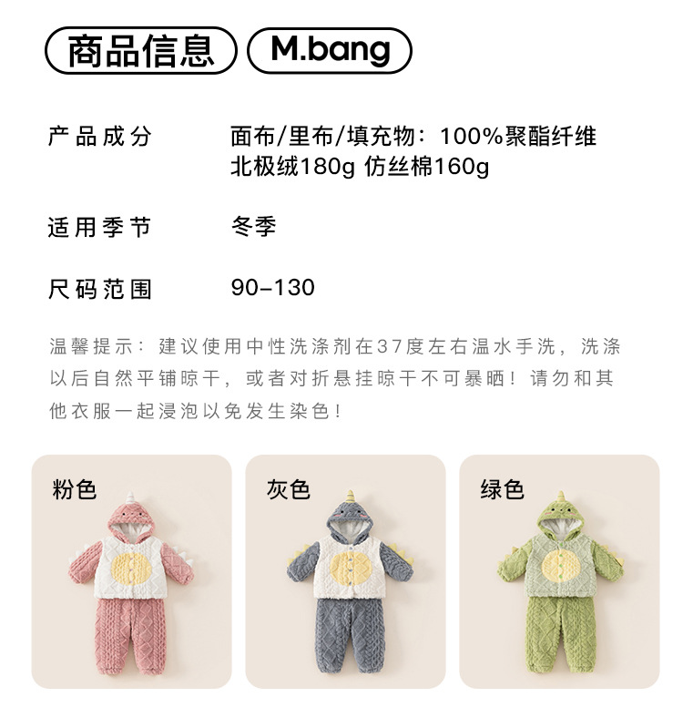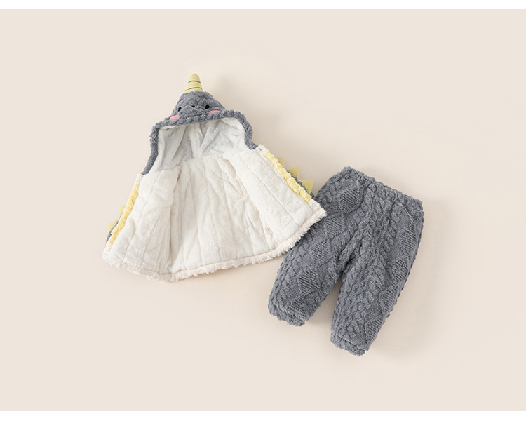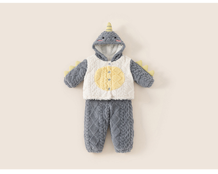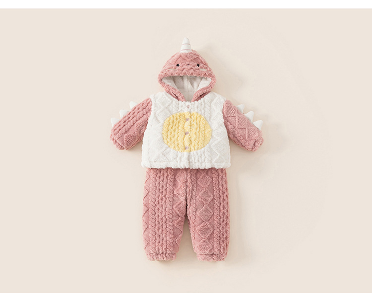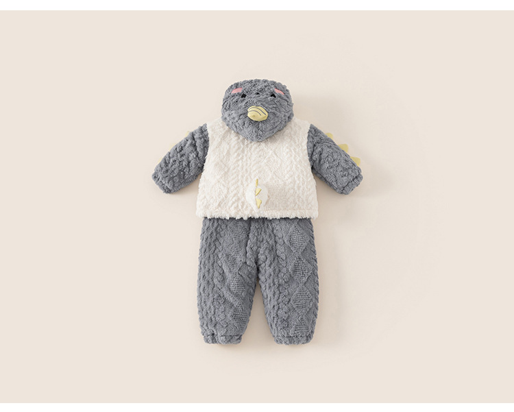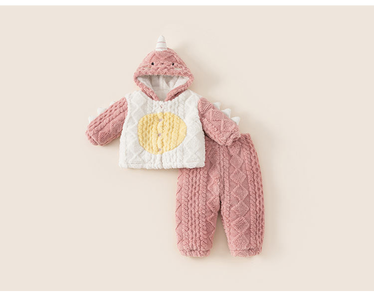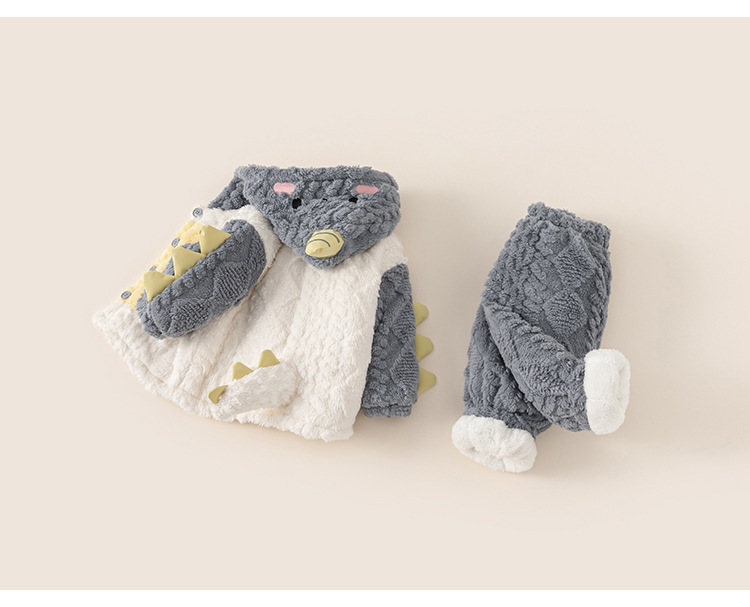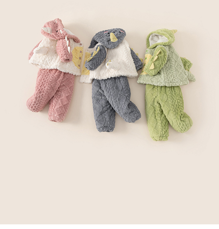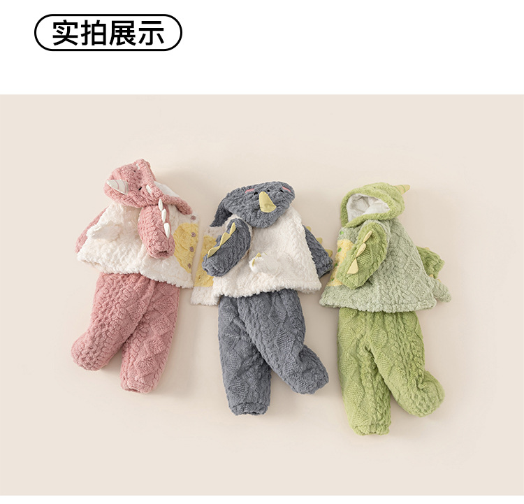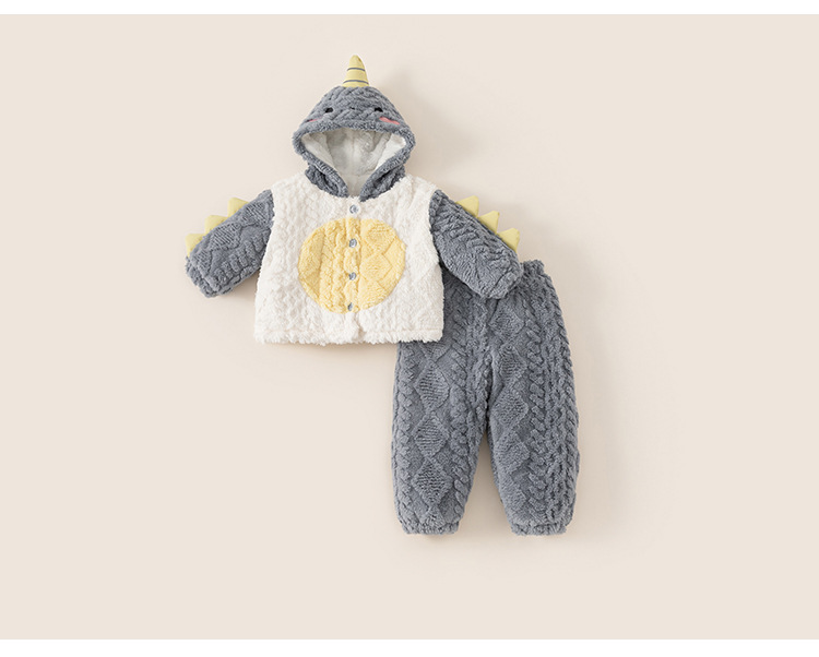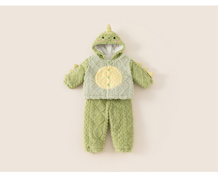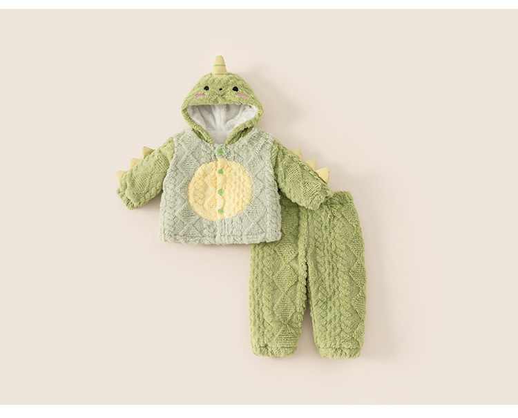 유바오 아동복 어린이 잠옷 세트 소녀들의 겨울 두꺼운 따뜻한 소년 봉제 만화 홈 옷 투피스 세트