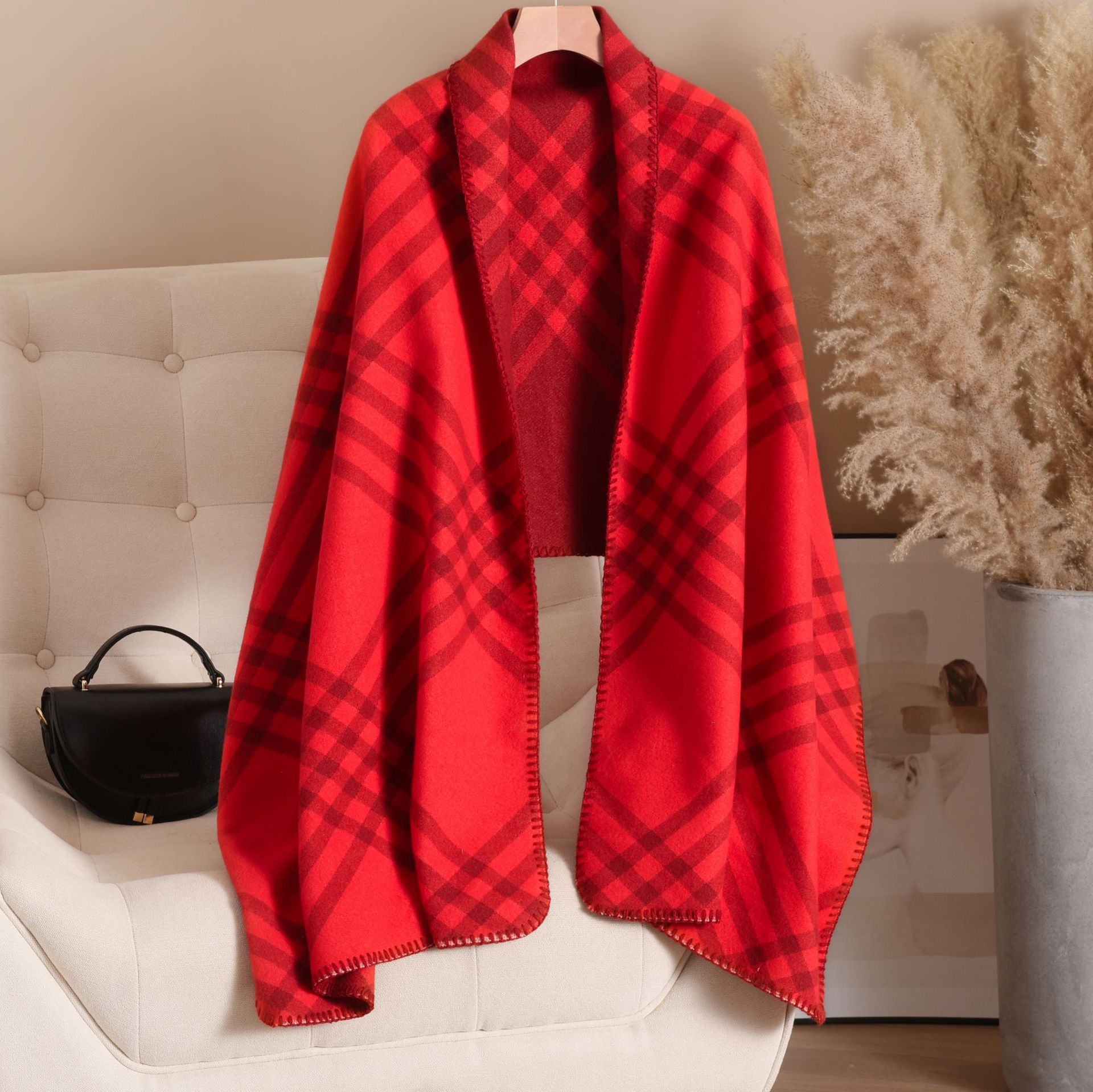韩版黑色仿羊绒围巾女冬季高级感双面格子纹保暖围脖加厚百搭披肩25.5RMB立即购买>