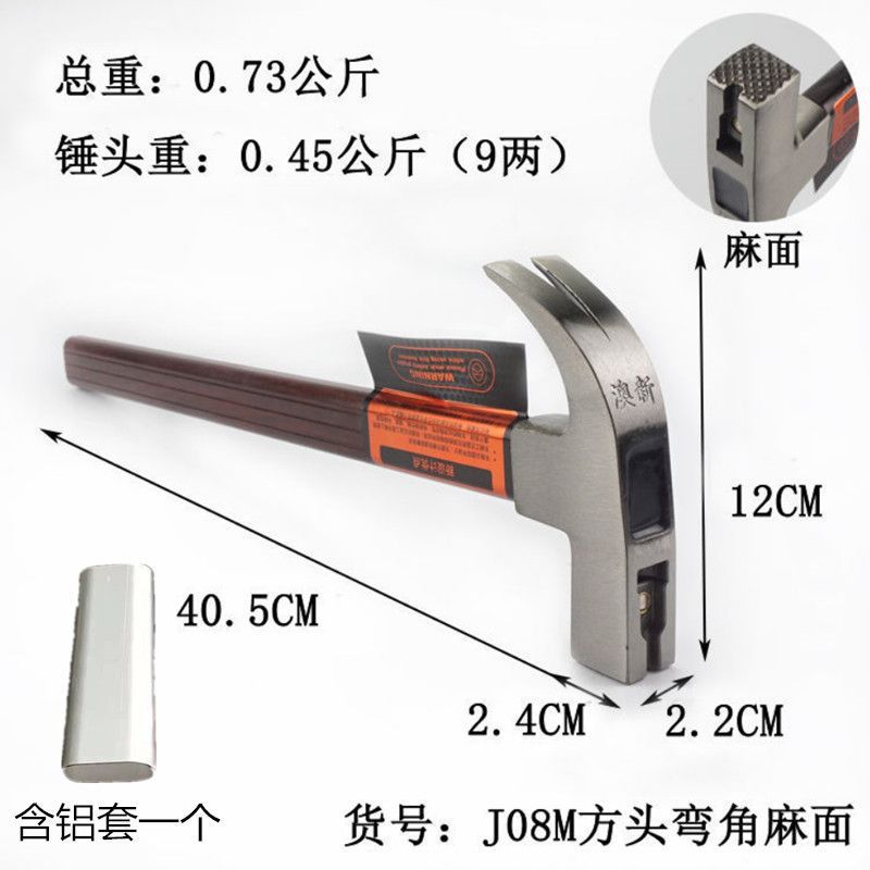 • J08M 사각 헤드, 각진 처마 표면 해머 헤드 0.5kg 프리 알루미늄 슬리브