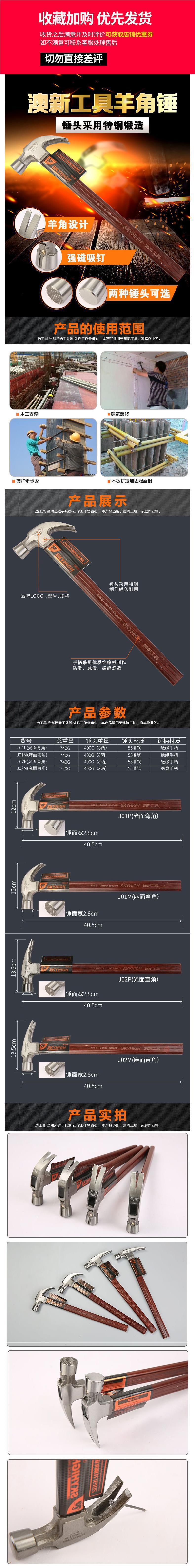 • J01P 코너 플랫 0.4kg 해머 헤드에는 알루미늄 슬리브가 함께 제공됩니다.