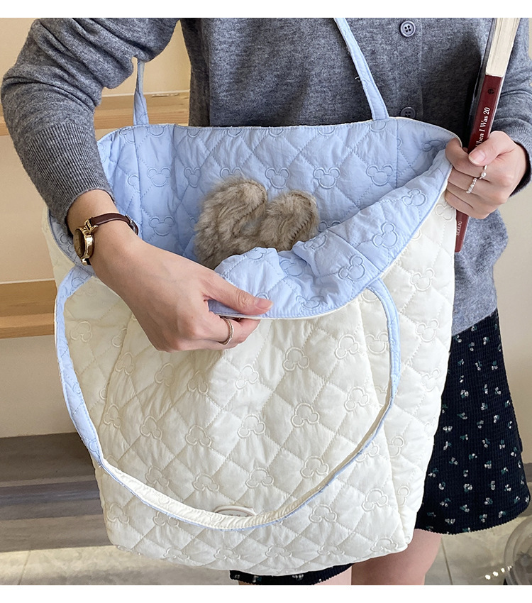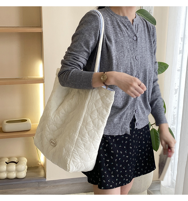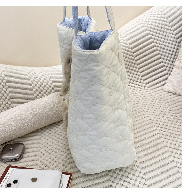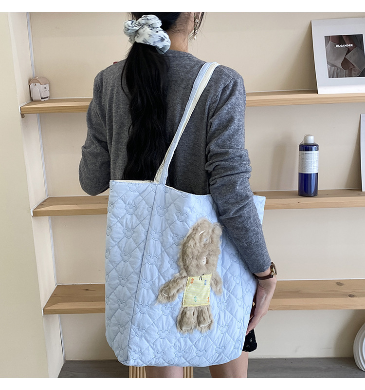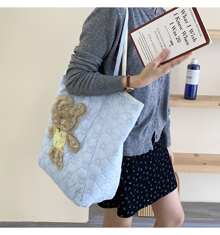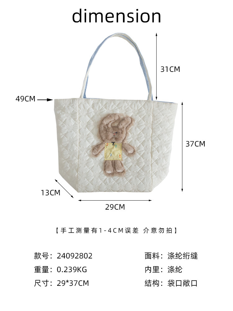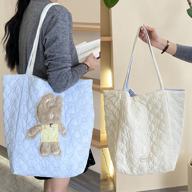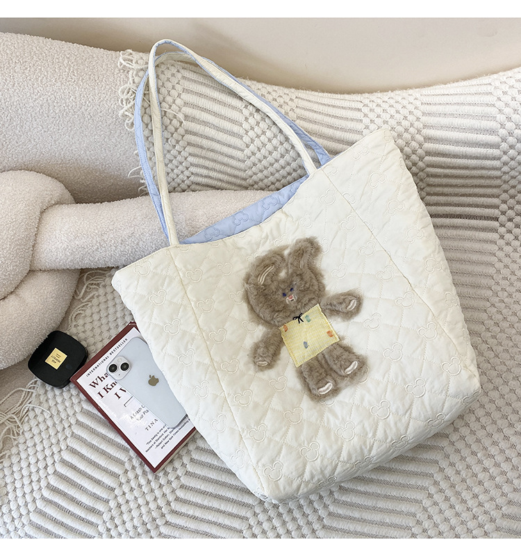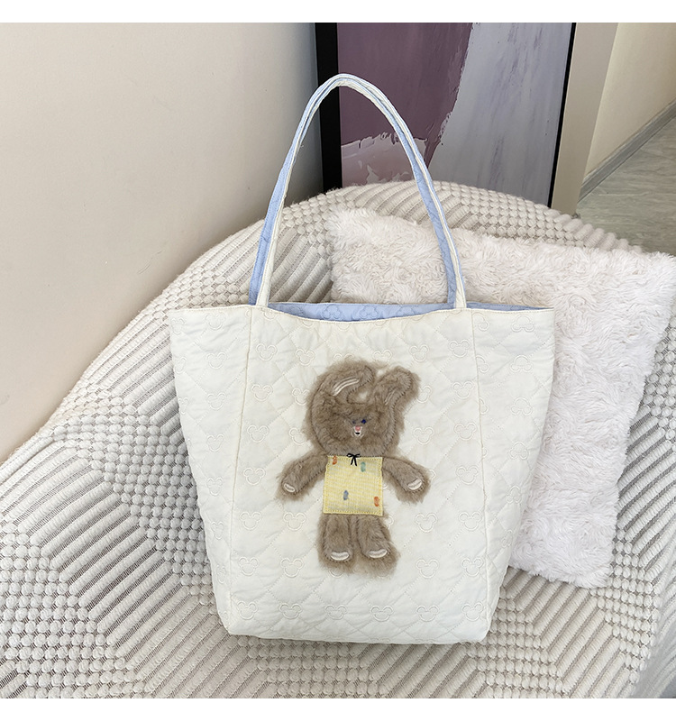 2024 새로운 대용량 어깨 토트 백 여성의 귀여운 토끼 캐주얼 올 매치 학생 클래스 헝겊 가방 트렌디스토어 가기