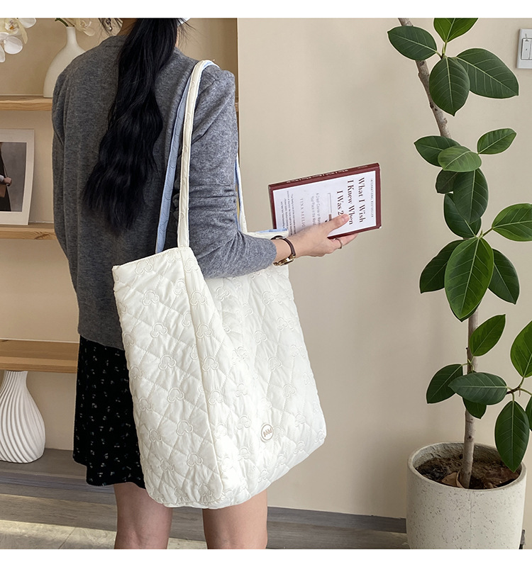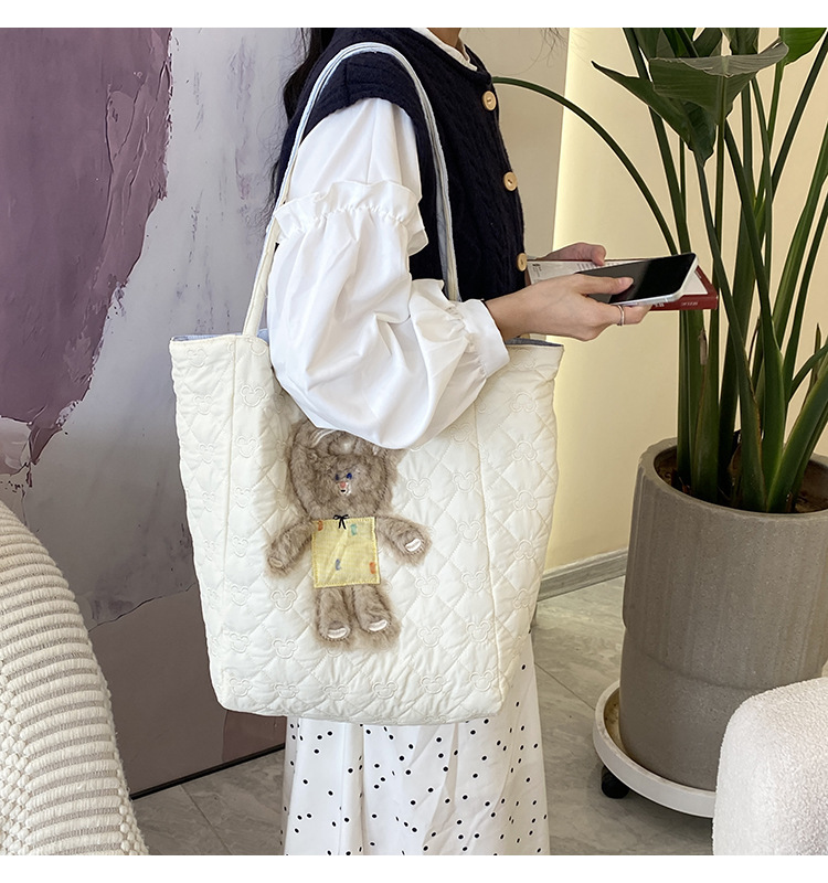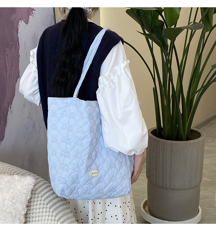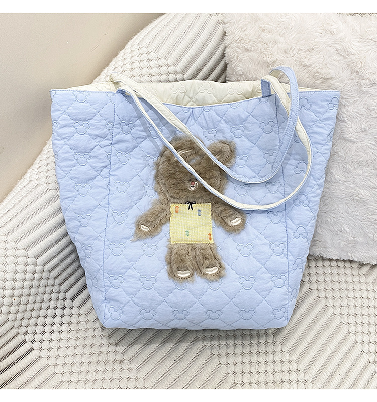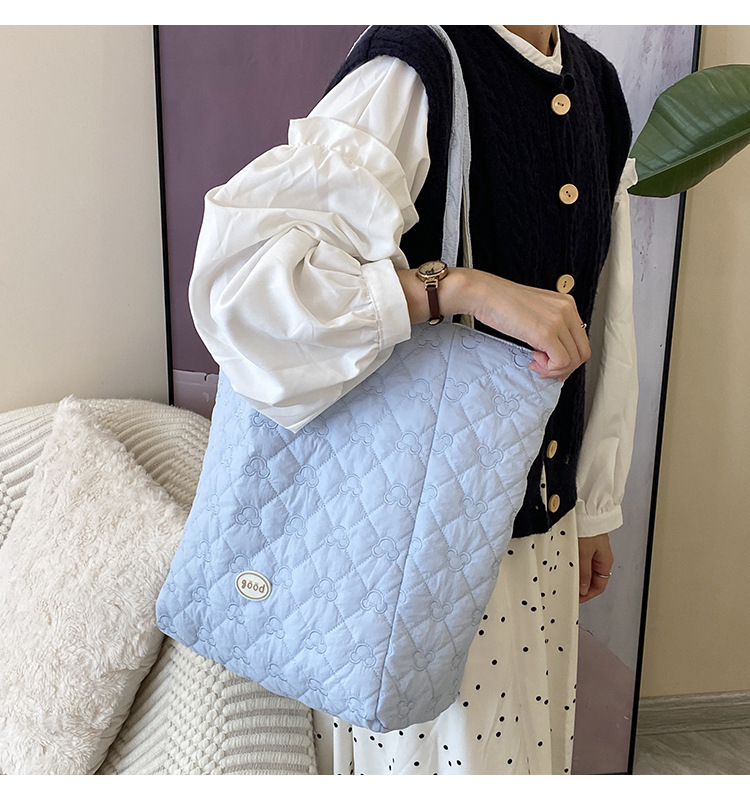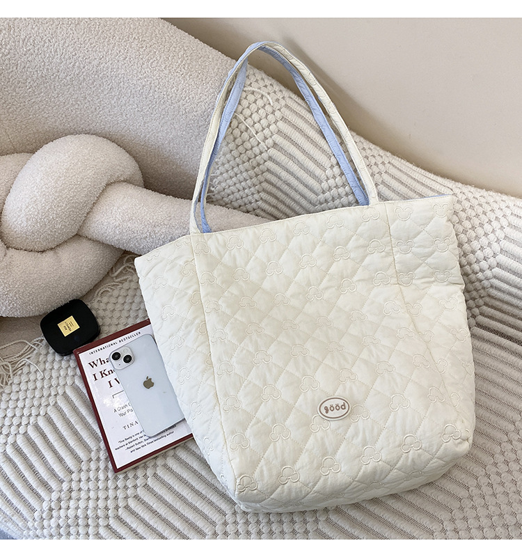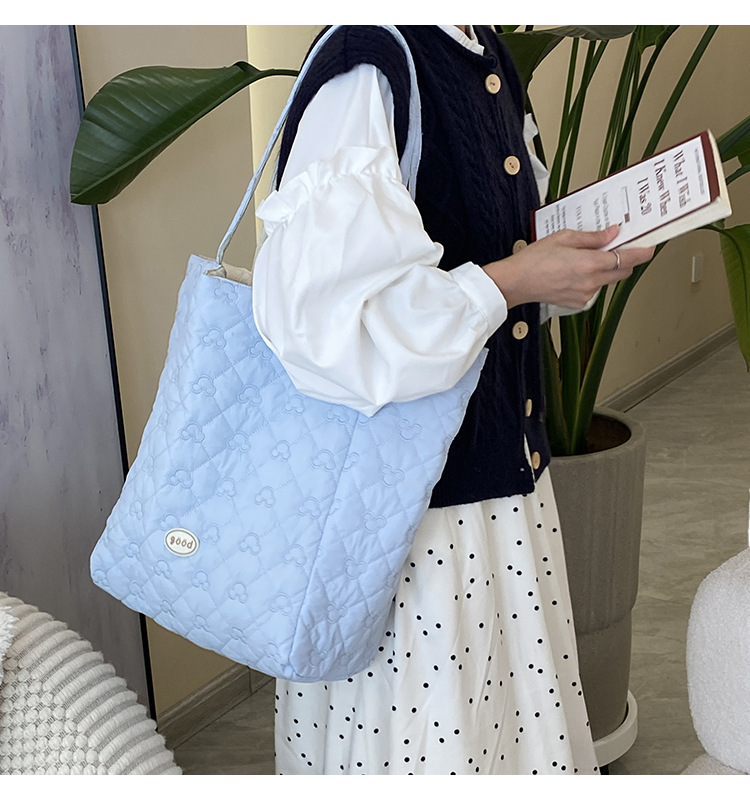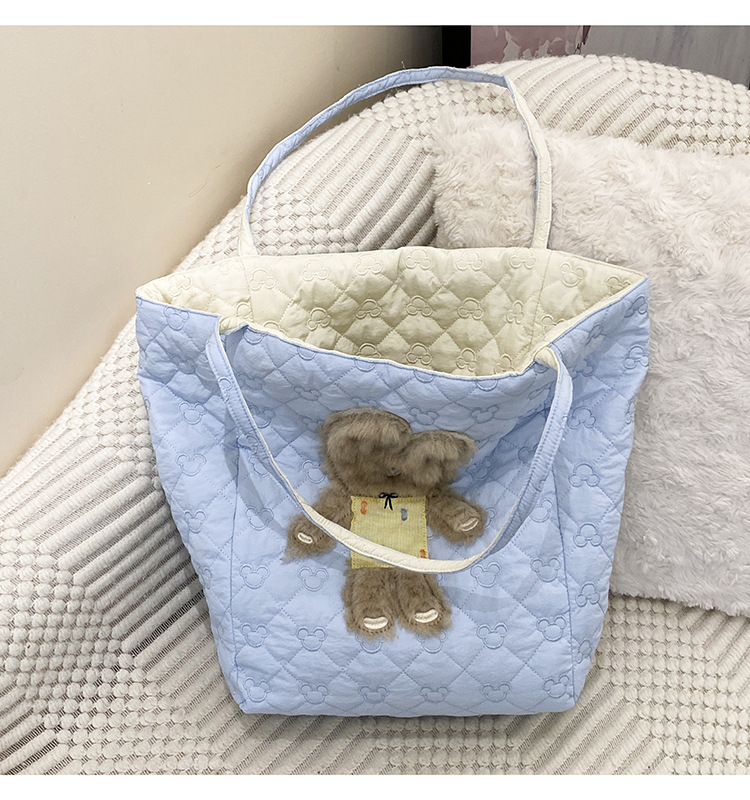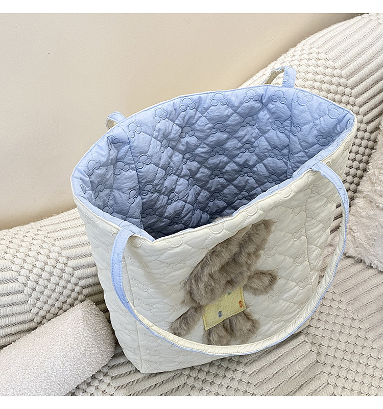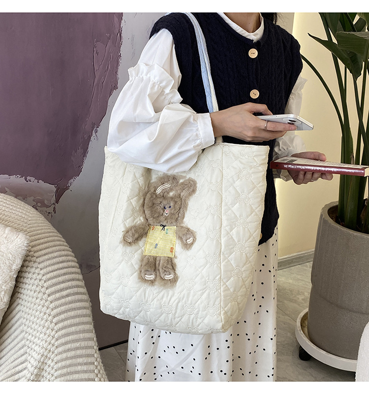 2024 새로운 대용량 어깨 토트 백 여성의 귀여운 토끼 캐주얼 올 매치 학생 클래스 헝겊 가방 트렌디스토어 가기