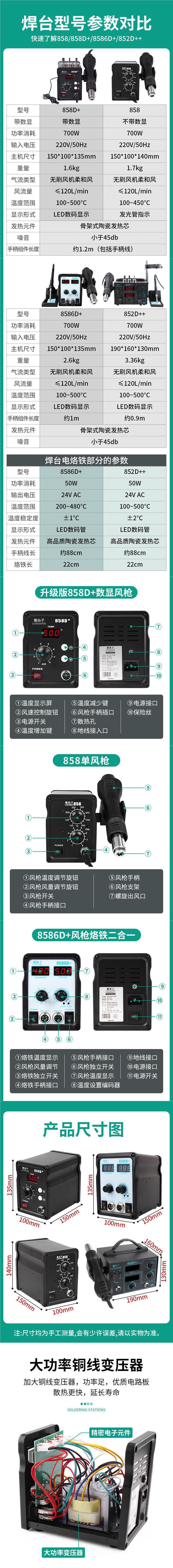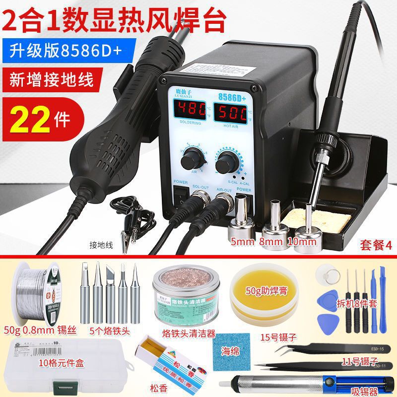 사슴 요정 휴대 전화 유지 보수 뜨거운 공기 총 납땜 역 2 대 1 전기 납땜 철 납땜 8586 고출력 온도 조정 디지털 디스플레이스토어 가기