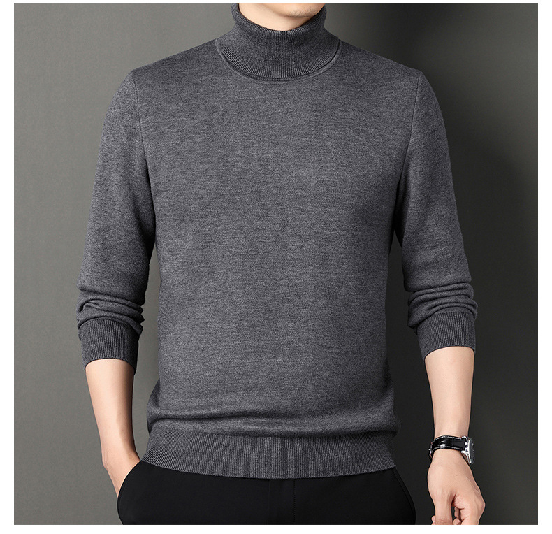 국경 원 벨벳 단색 스웨터 남자 2024 년 겨울 새 기모 긴 소매 스웨터 하이 칼라베이스 셔츠 남성 배치