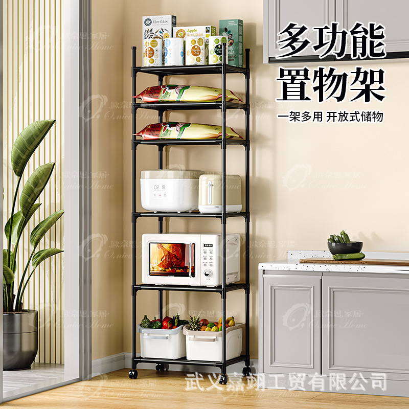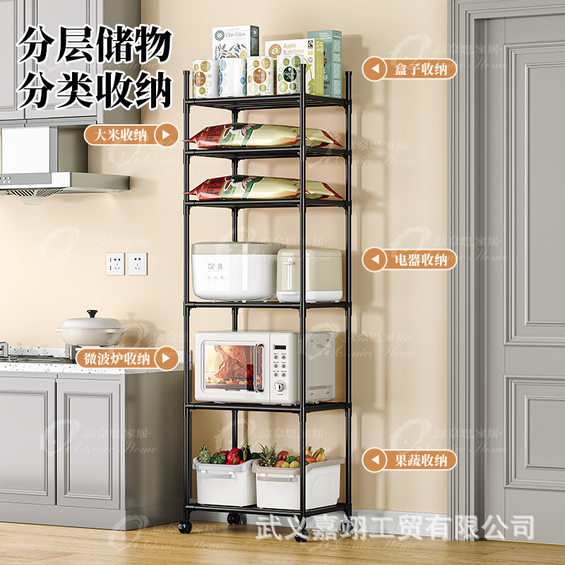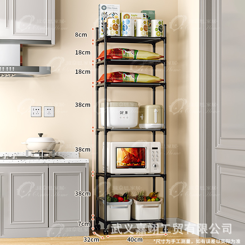새로운 간단한 다층 바닥 스탠딩 슬라이딩 휠 가정용 수납 선반 주방 전자레인지 선반 주방 욕실 수납 선반스토어 가기