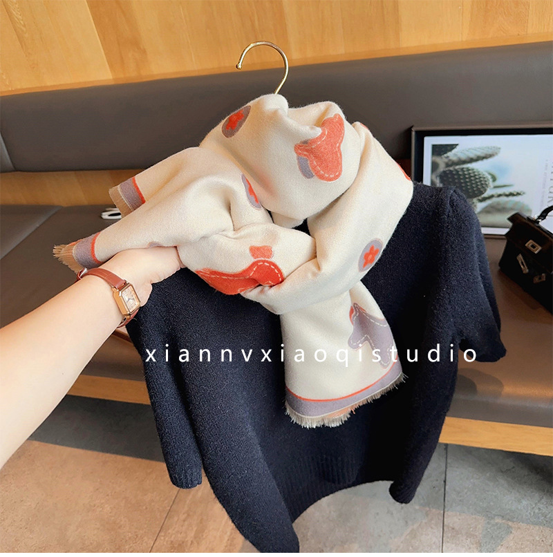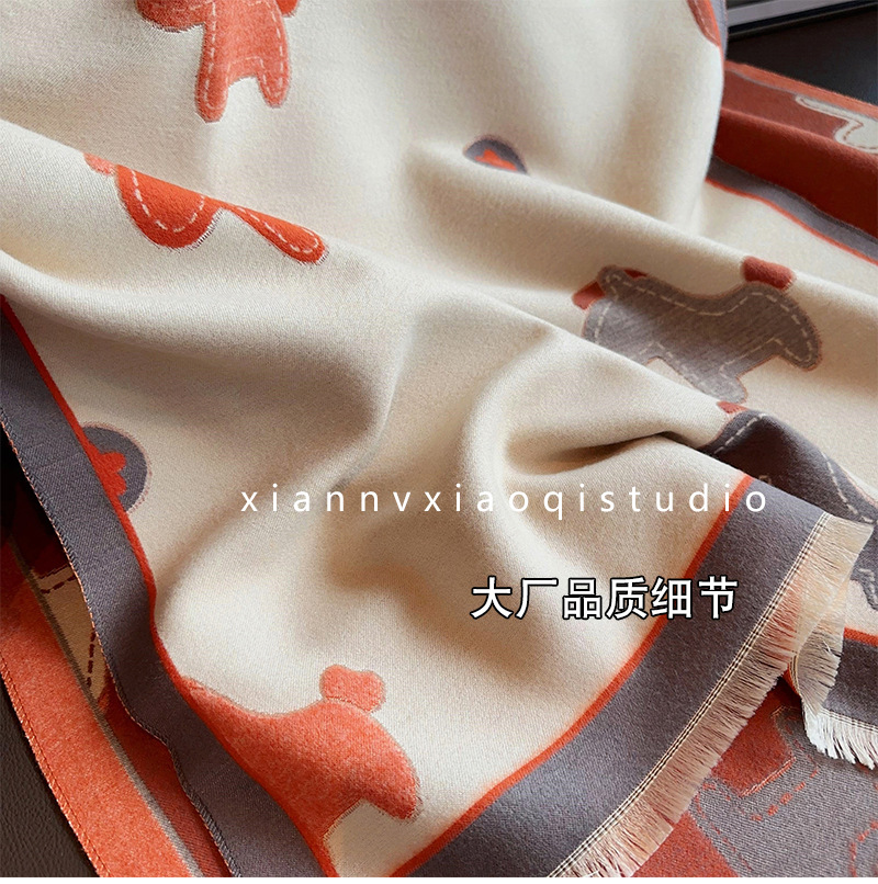 어린이 재미 트로이 목마 한국 스타일 따뜻한 스카프 여성의 2024 겨울 새로운 분위기 감성 모방 캐시미어 목도리 두꺼운 스카프스토어 가기