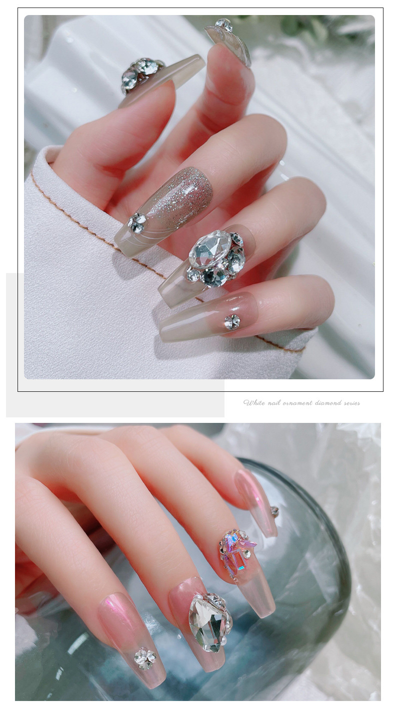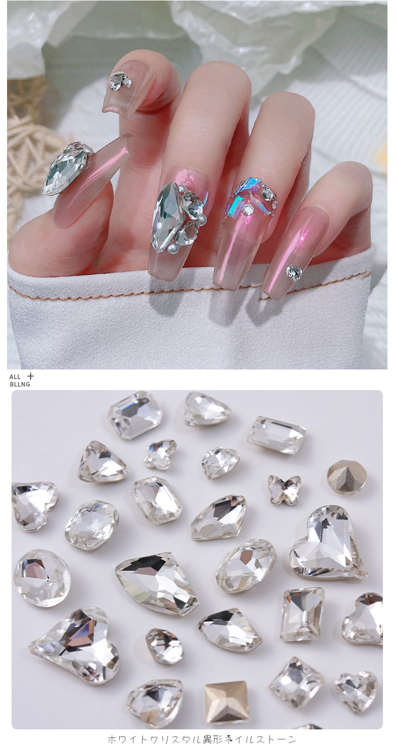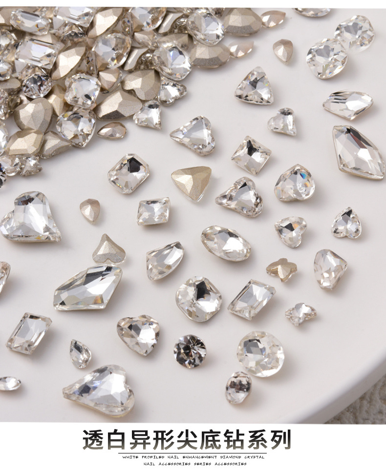 도매 네일 쥬얼리 투명 뾰족한 바닥 드릴 슈퍼 플래시 큰 비뚤어진 심장 도끼 물방울 지방 사각형 나비 흰색 다이아몬드 네일 액세서리스토어 가기