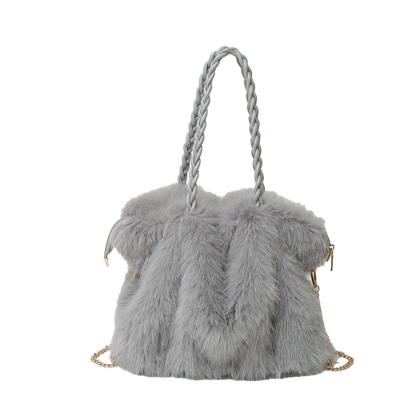 새로운 봉제 가방 여성의 고급 패션 주름 된 가짜 여우 모피 어깨 메신저 가방 대용량 토트 모피 가방스토어 가기