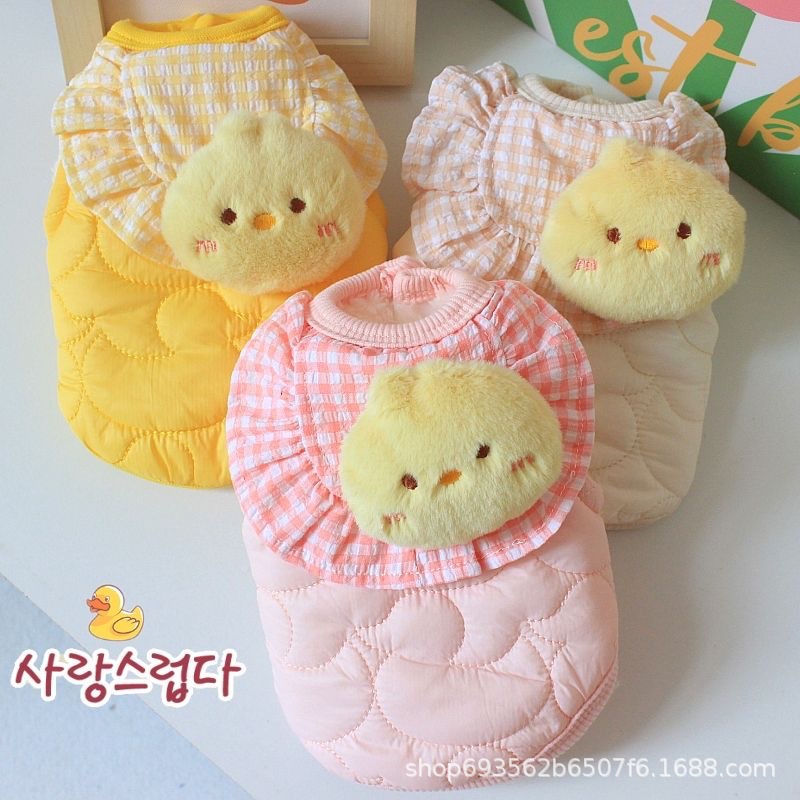 부드러운 귀여운 오리 애완 동물 옷 개 가을과 겨울 새로운 테디 베어 면화 따뜻한 고양이 조끼스토어 가기