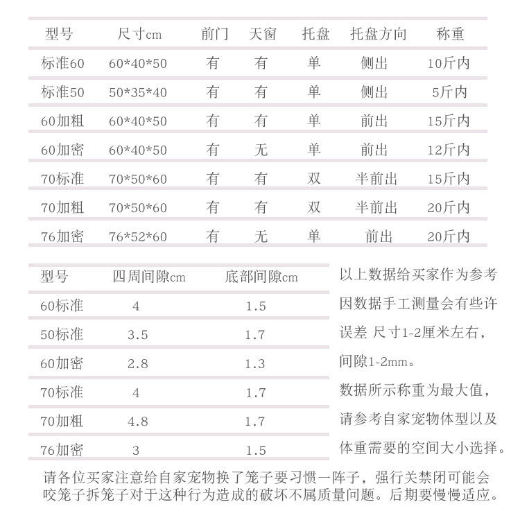 • ❣❣♥❤케이지(트레이 + 이중 그릇 + 발 패드 포함)❤♥❣❣