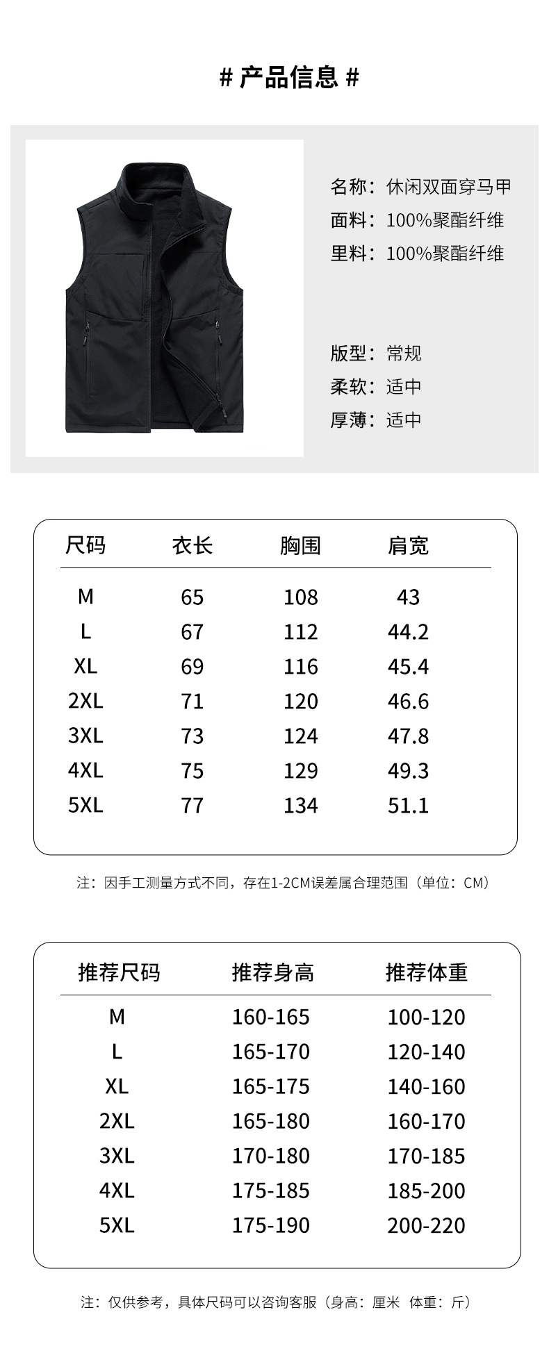 양면 조끼 남자 가을 남자 캐주얼 스포츠 두꺼운 따뜻한 야외 툴링 웨이스트 코트 재킷