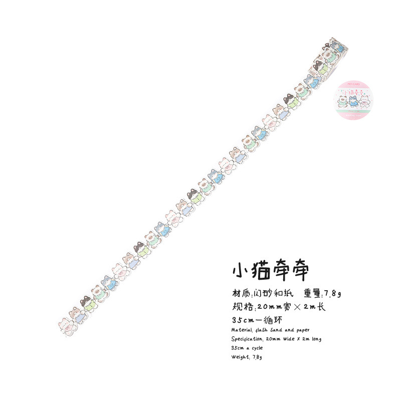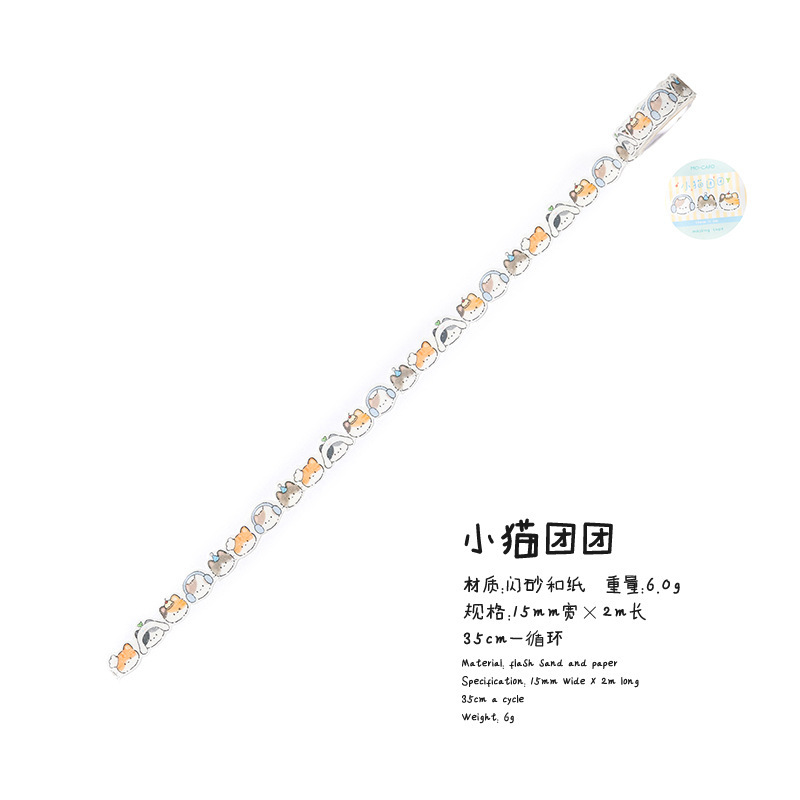 모모 빛나는 모래와 종이 모양의 테이프 고양이 Gashapon 시리즈 귀여운 손으로 그린 그림 핸드북 DIY 장식 콜라주