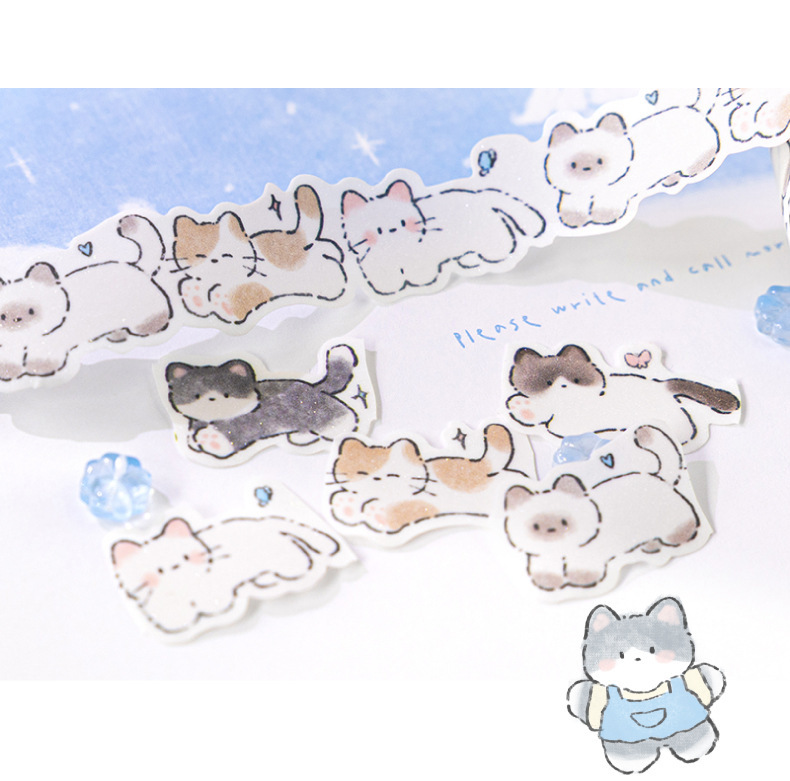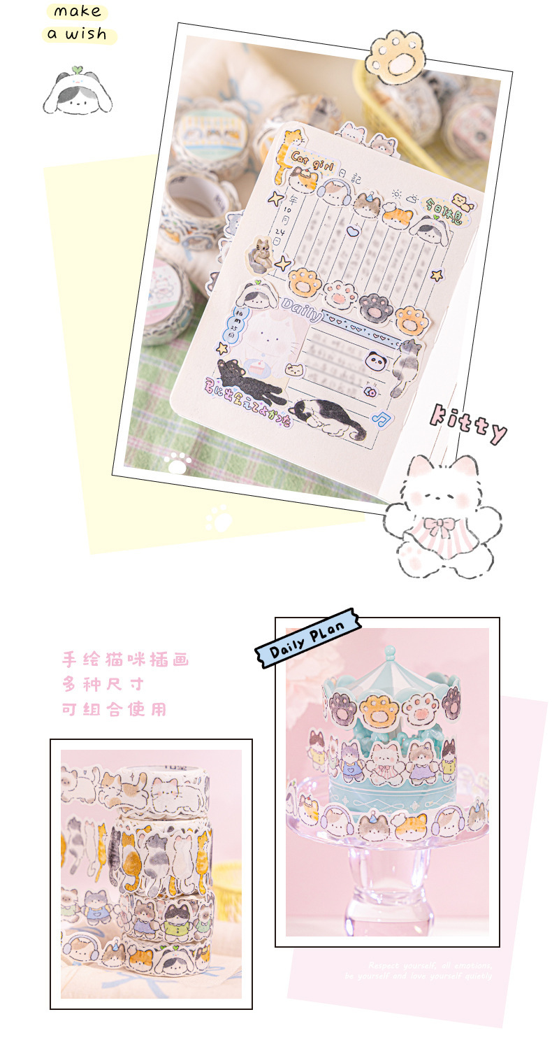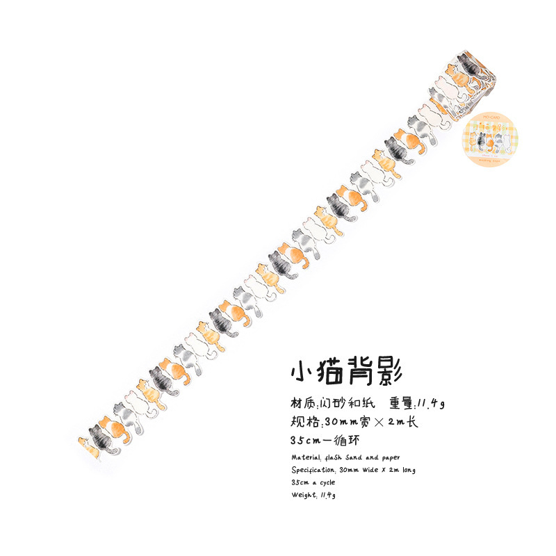 모모 빛나는 모래와 종이 모양의 테이프 고양이 Gashapon 시리즈 귀여운 손으로 그린 그림 핸드북 DIY 장식 콜라주스토어 가기