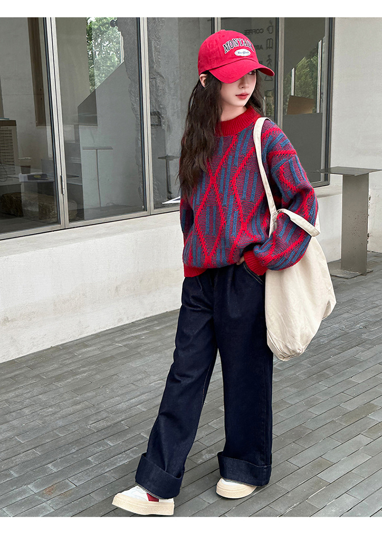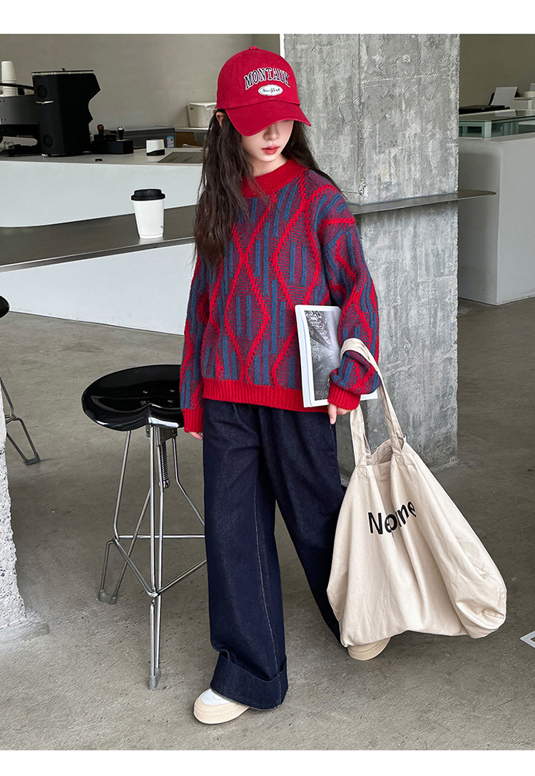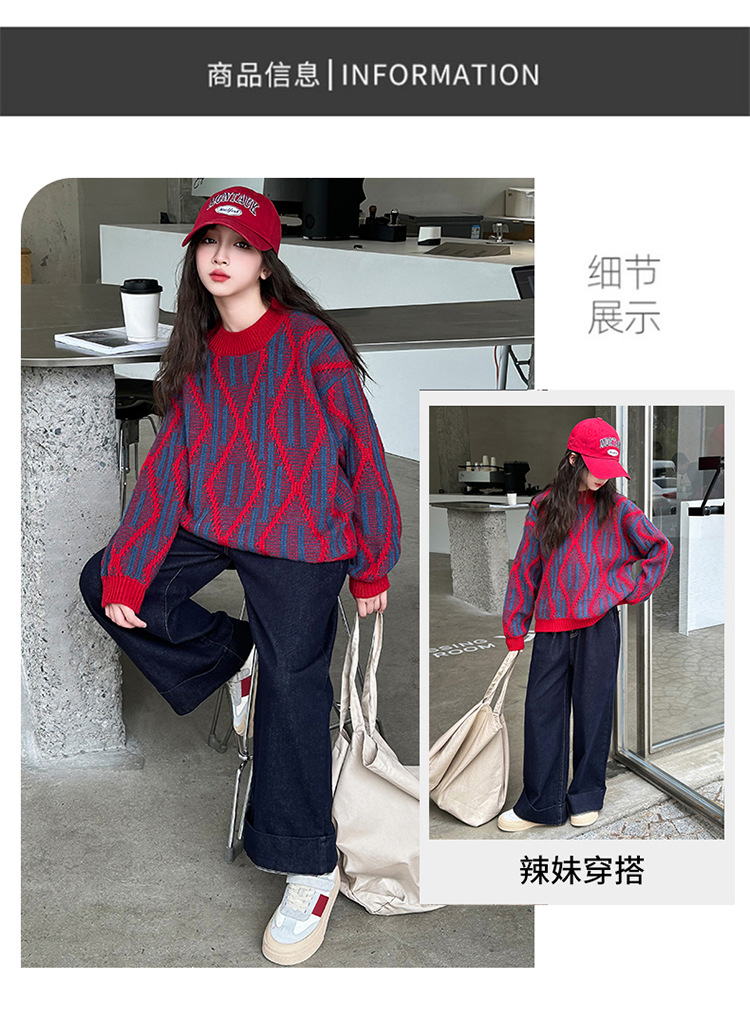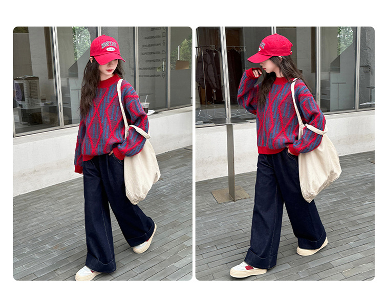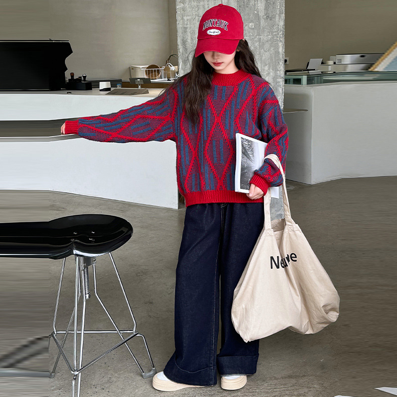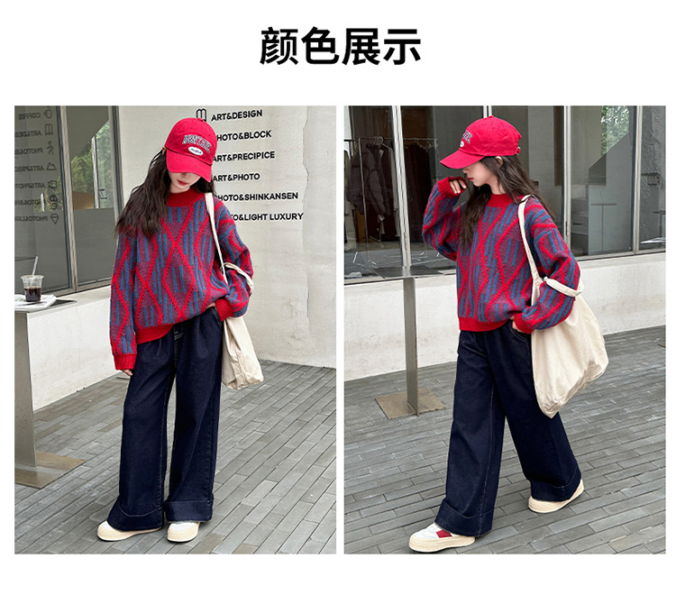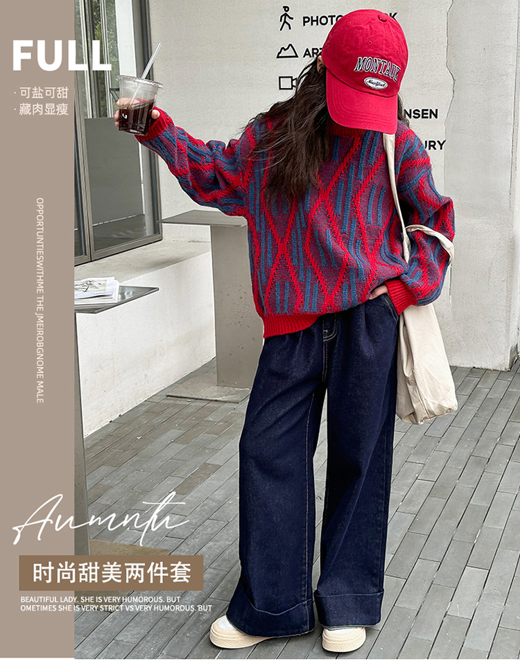 여자 세트 가을 겨울 2024 새로운 아이들 소녀 겨울 한국 스타일 유행 베이스 스웨터 투피스 세트
