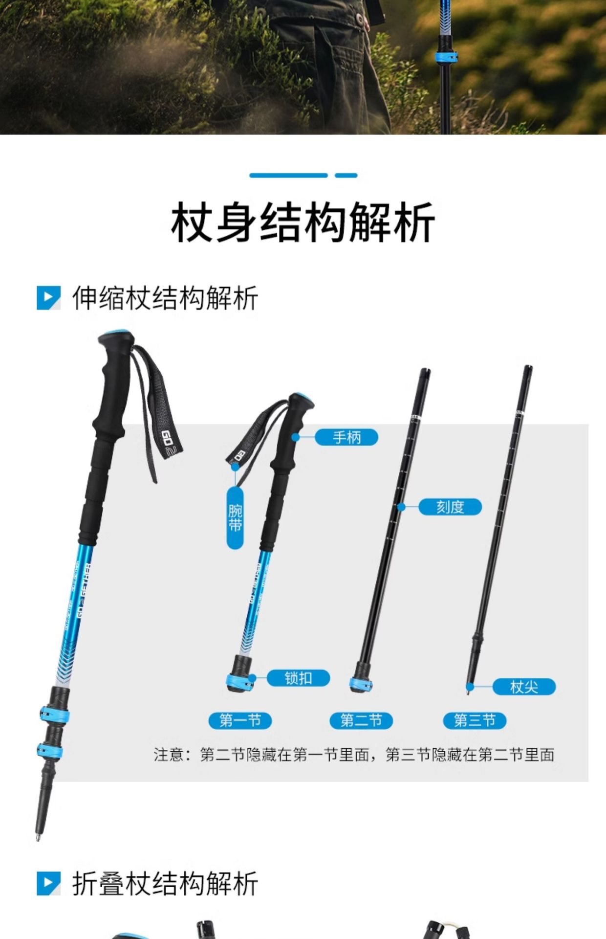 알루미늄 합금 잠금 3 섹션 망원경 워킹 스틱 탄소 접히는 하이킹 스틱 야외 휴대용 하이킹 마운틴 클라이밍 스틱 장비스토어 가기