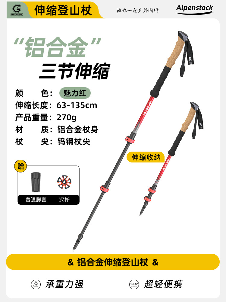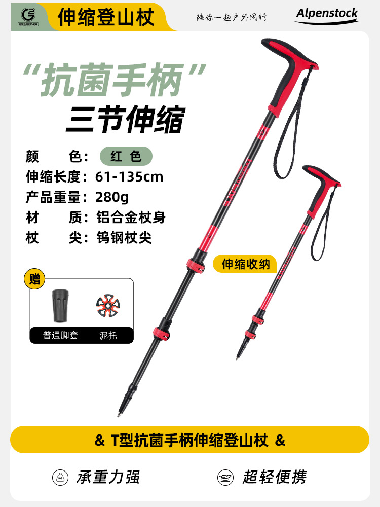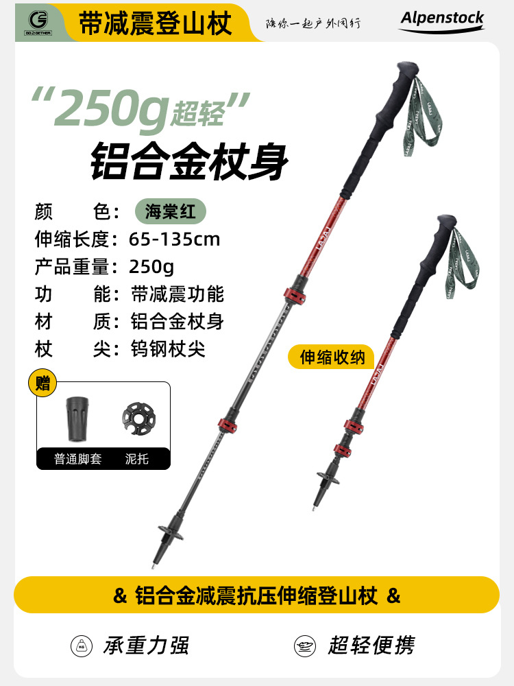 • 알루미늄 합금 트레킹 폴 [빨간색 무게 160g√]