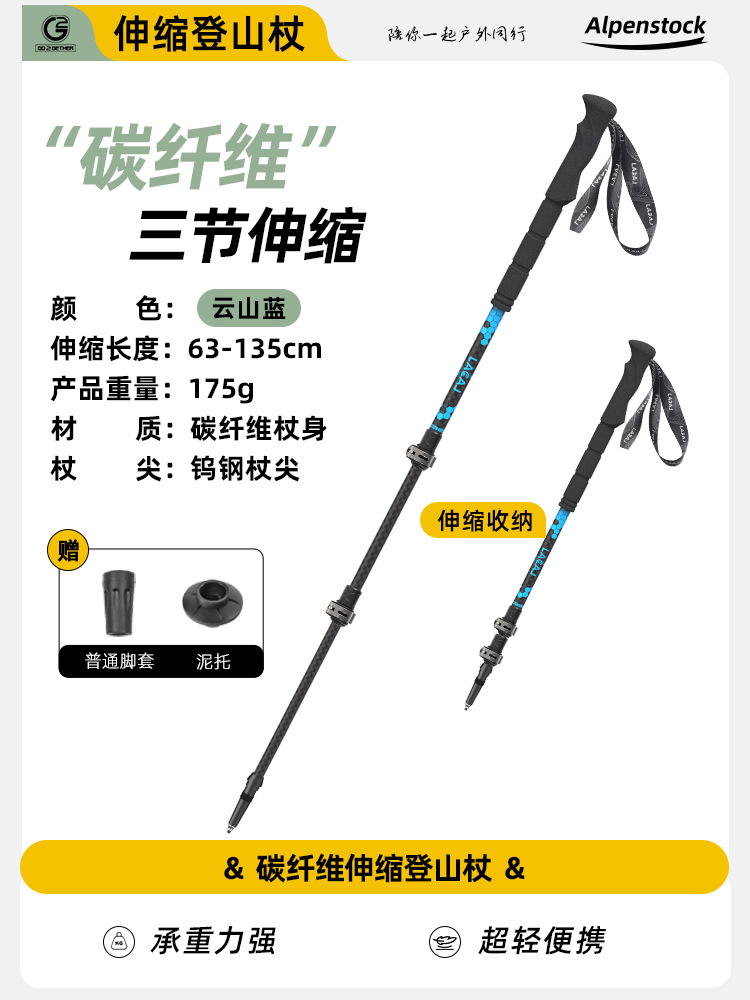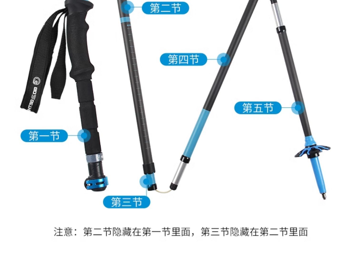 • 3K 탄소 섬유 텔레스코픽 폴 블루(외부 잠금 장치 172g)