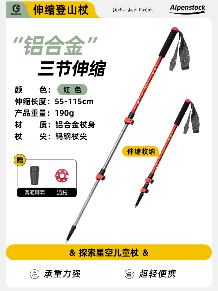 • 알루미늄 합금 어린이 지팡이 - 스타리 스카이 레드 탐험 [키 165cm 이하에 적용 가능]