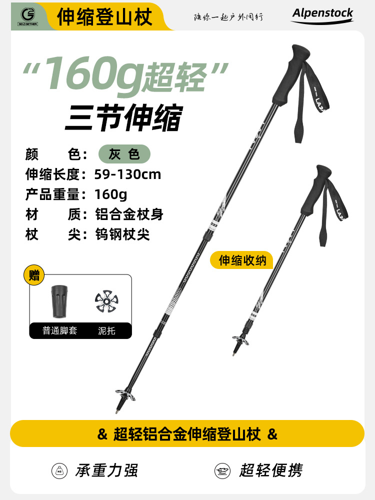 • 알루미늄 합금 트레킹 폴 [회색 무게 160g√]