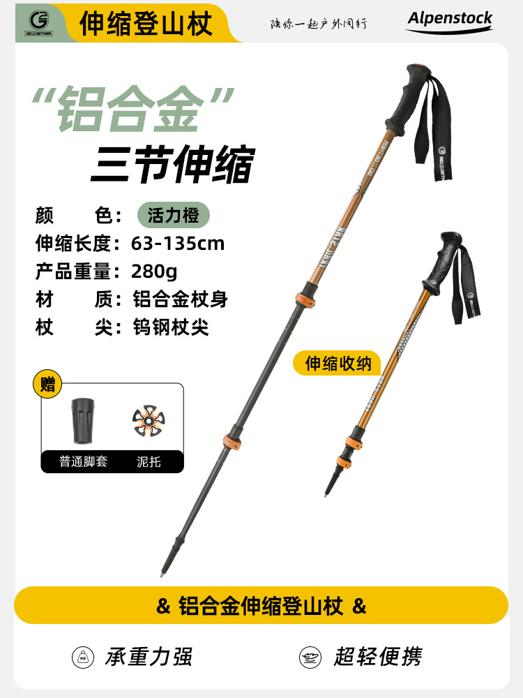 • 알루미늄 합금 트레킹 폴 [오렌지 무게 160g√]
