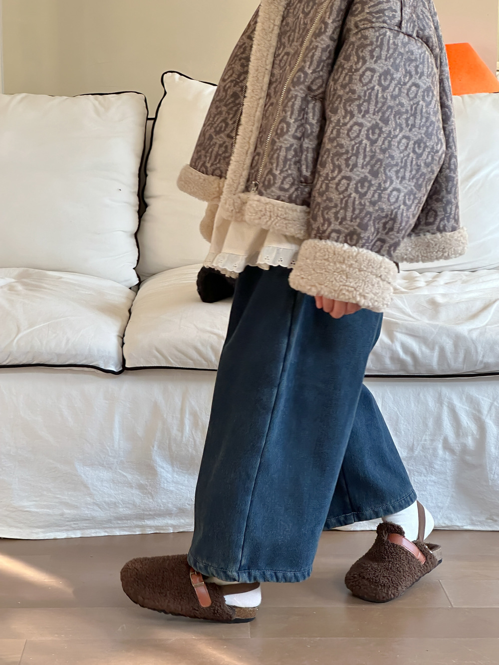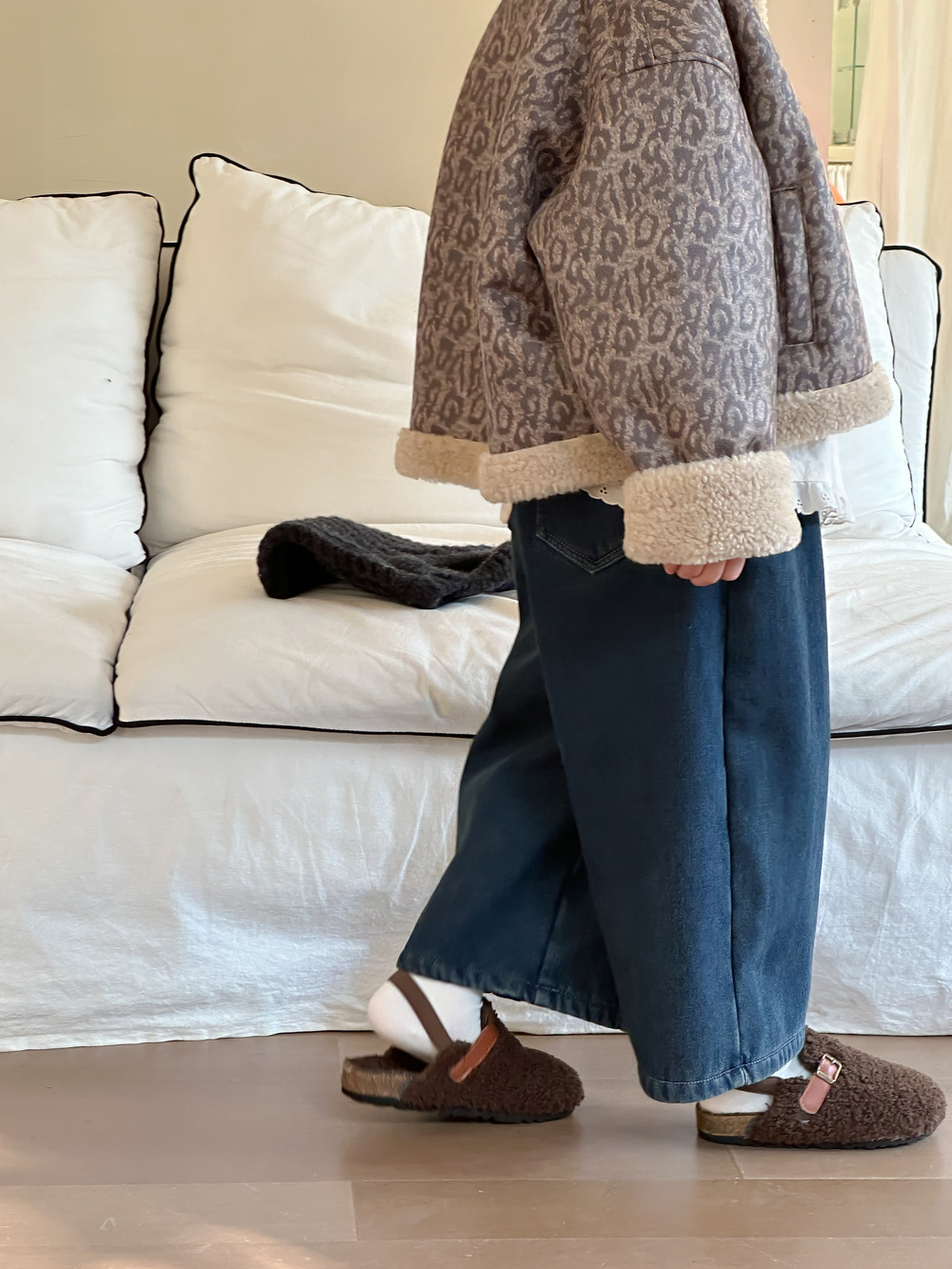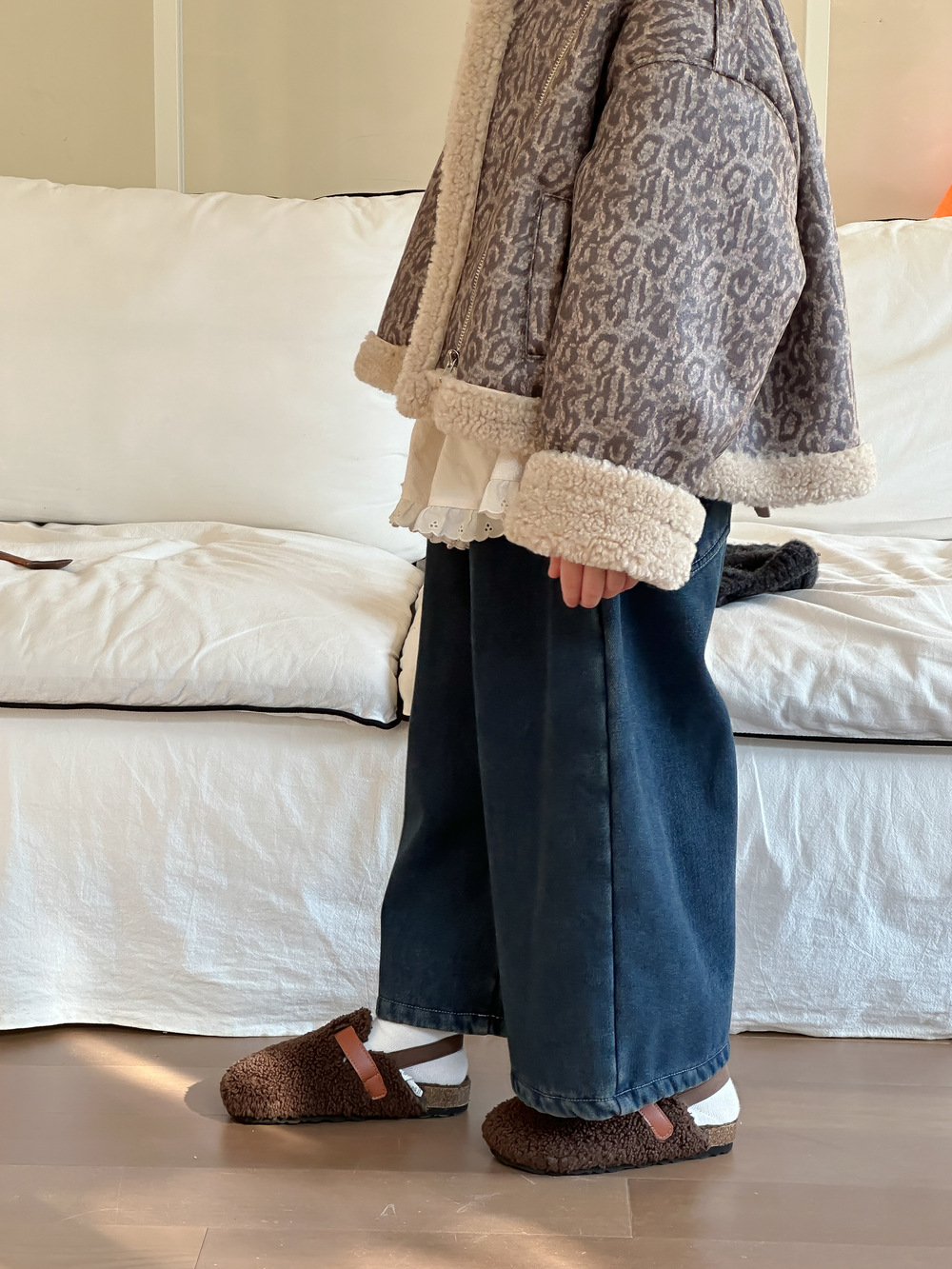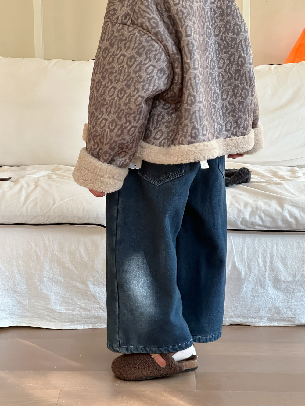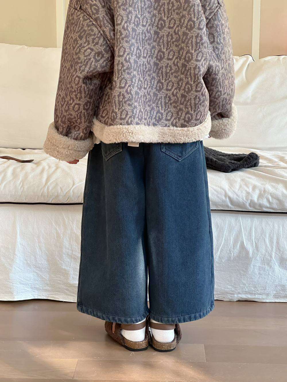 아동용 바지 2025 겨울 여아용 한국 스타일 단색 디자인 데님 바지 아동용 플리스 안감 캐주얼 루즈핏 스트레이트 롱 팬츠스토어 가기