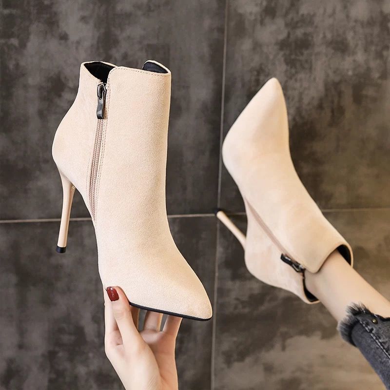 Z 짧은 부츠 여성 봄, 가을 싱글 부츠 2024 새로운 섹시한 스틸레토 지적 발가락 슬림 부츠 베어 부츠 짧은 부츠 하이힐 가을스토어 가기