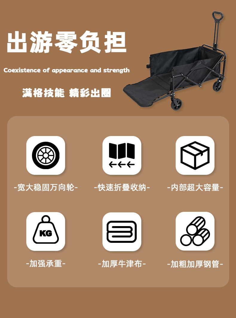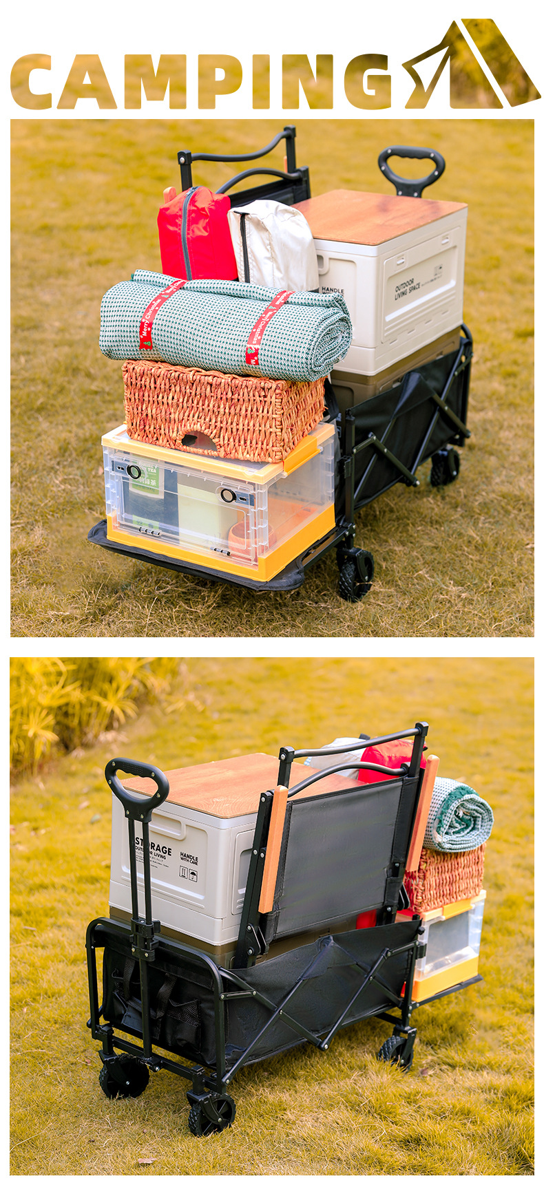 야외 캠핑 트롤리 접이식 캠핑 핸드 푸시 피크닉 카 캠프 트레일러 자동 트롤리 낚시 테이블