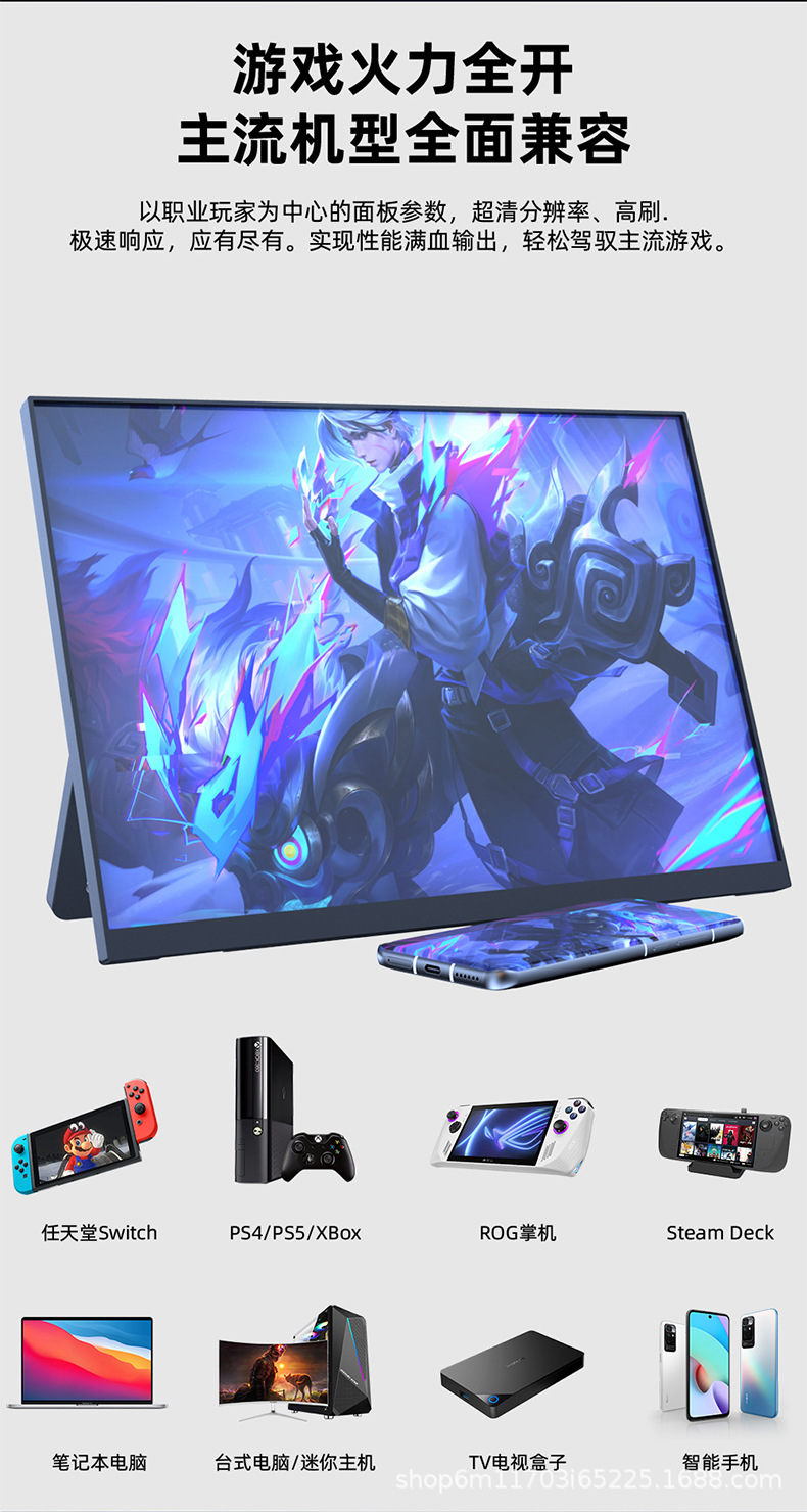 15.6 인치 휴대용 모니터 스탠드 지원 컴퓨터 스위치/PS5/XSX/XSS/XBOX 연결스토어 가기