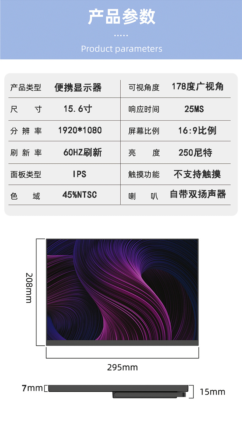 15.6 인치 휴대용 모니터 스탠드 지원 컴퓨터 스위치/PS5/XSX/XSS/XBOX 연결