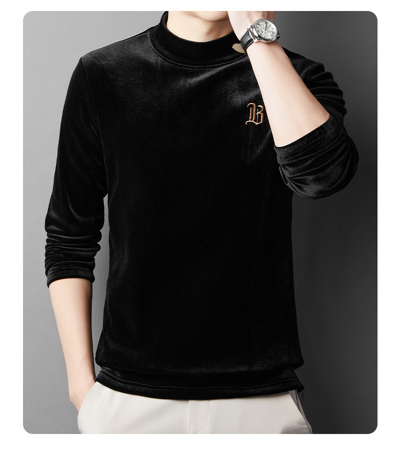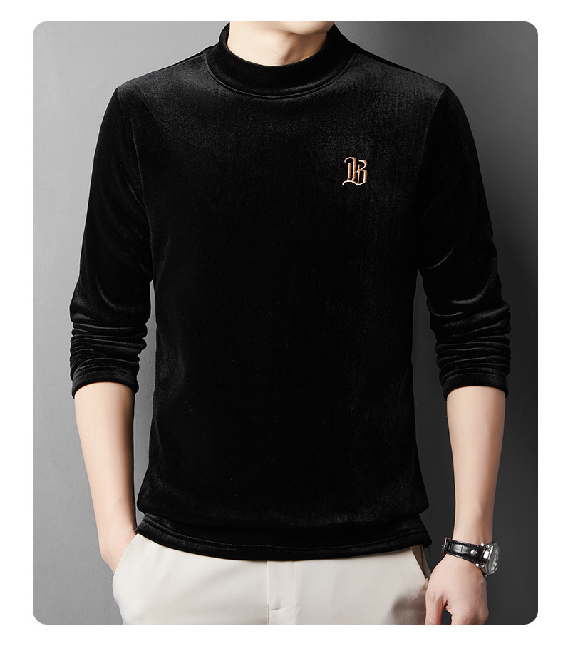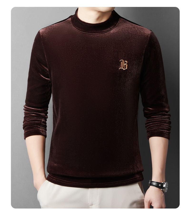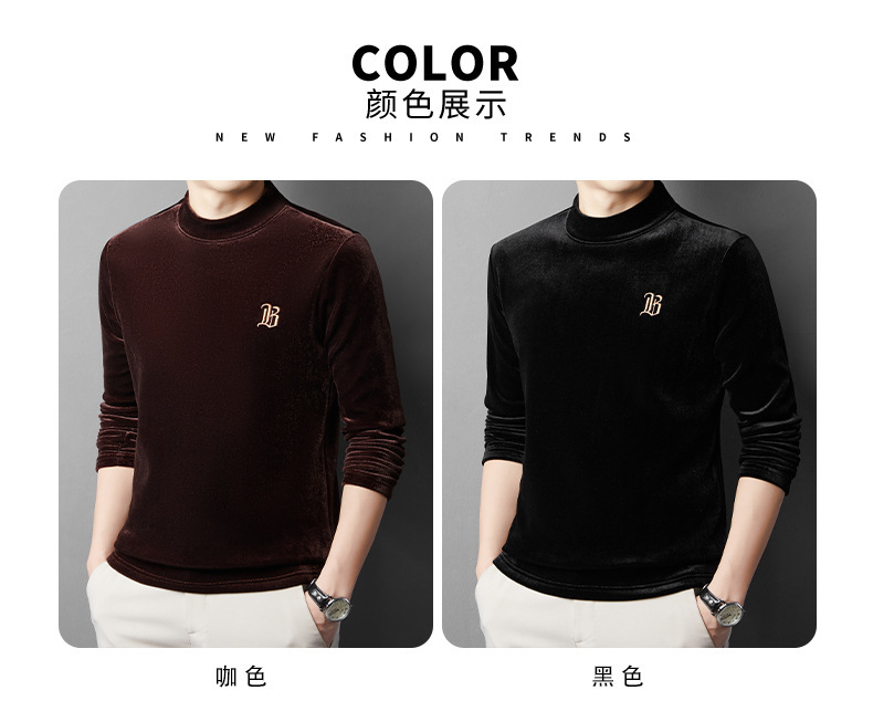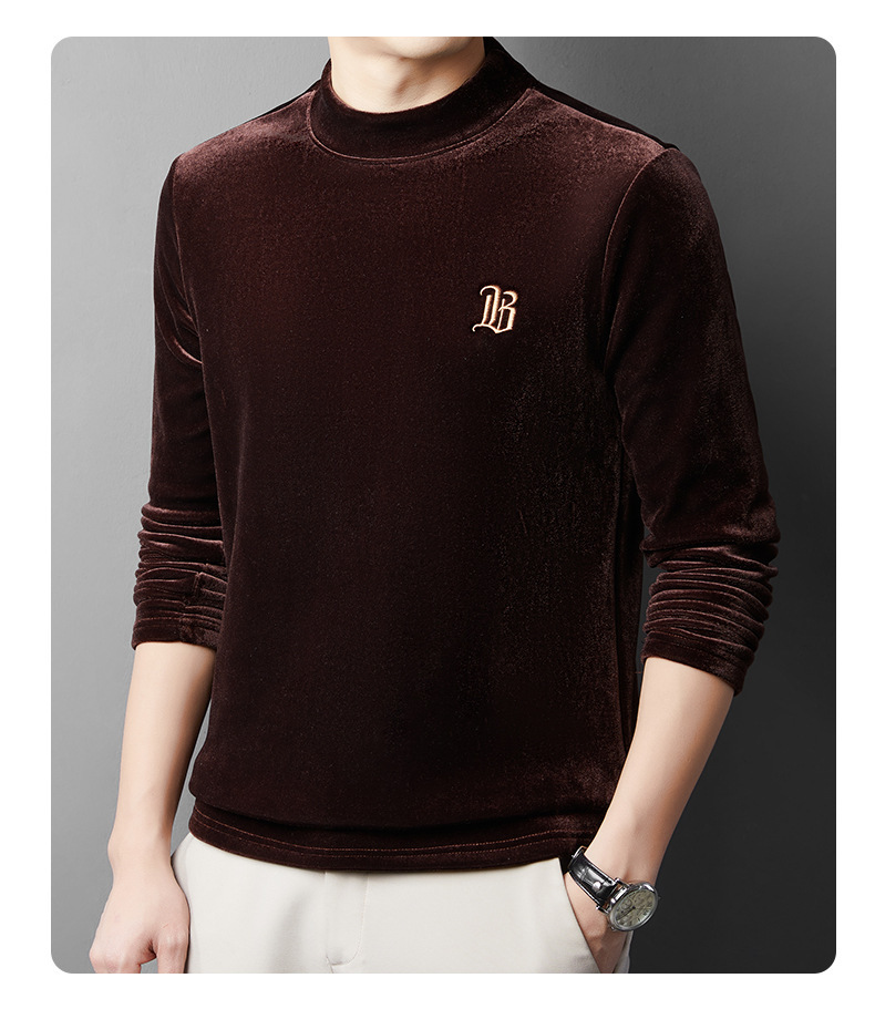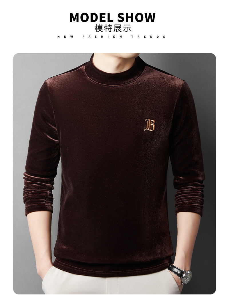 골드 벨벳 긴팔 티셔츠 2024 가을과 겨울 기모 두껍게 새 바닥 셔츠 최고 중년 남성 따뜻한 스웨터스토어 가기