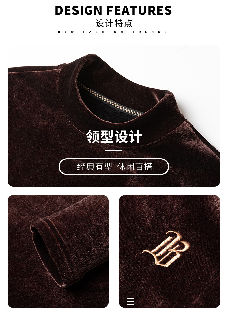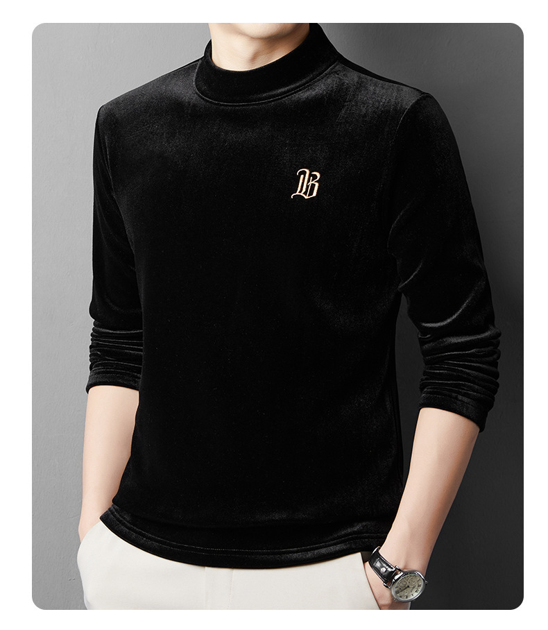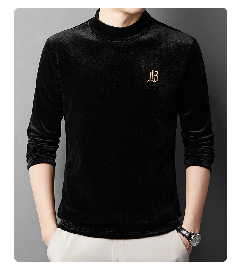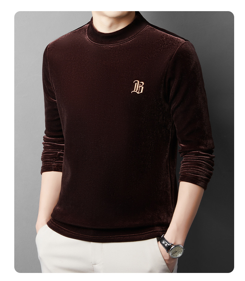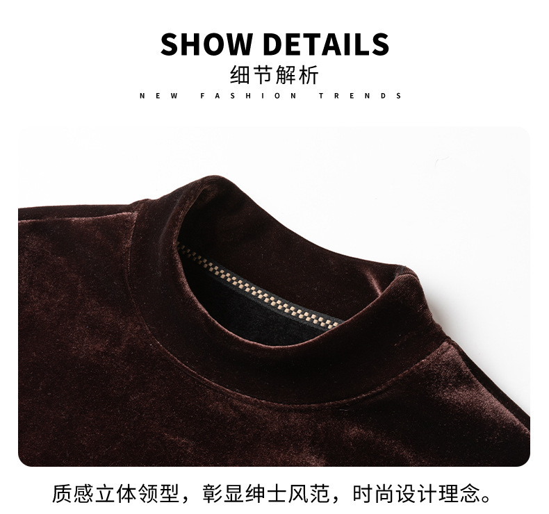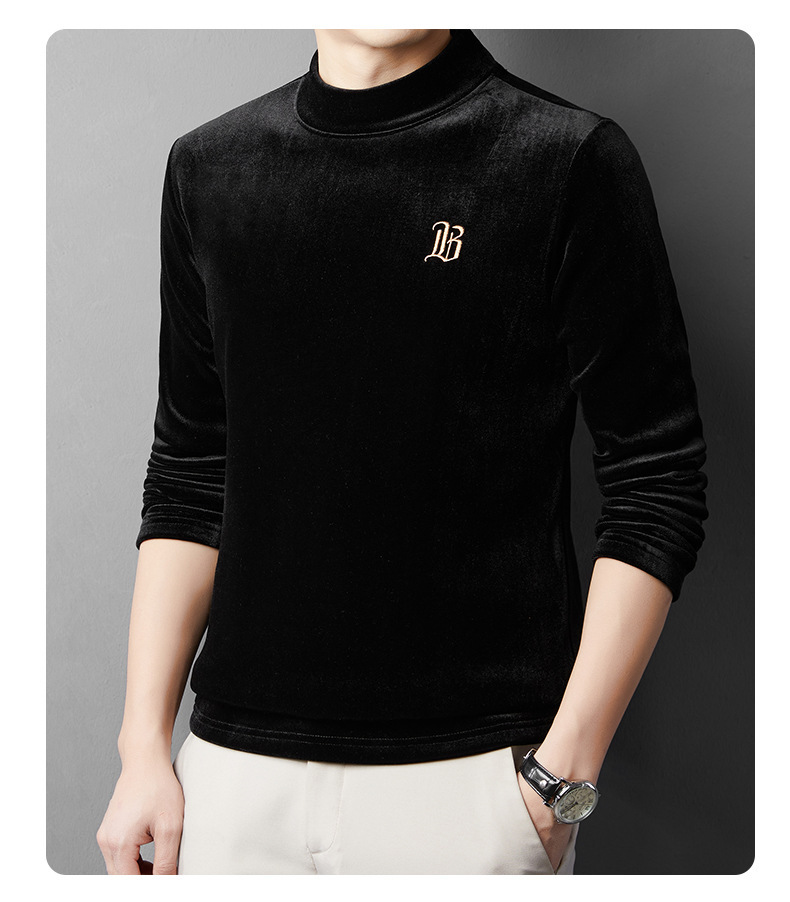 골드 벨벳 긴팔 티셔츠 2024 가을과 겨울 기모 두껍게 새 바닥 셔츠 최고 중년 남성 따뜻한 스웨터스토어 가기