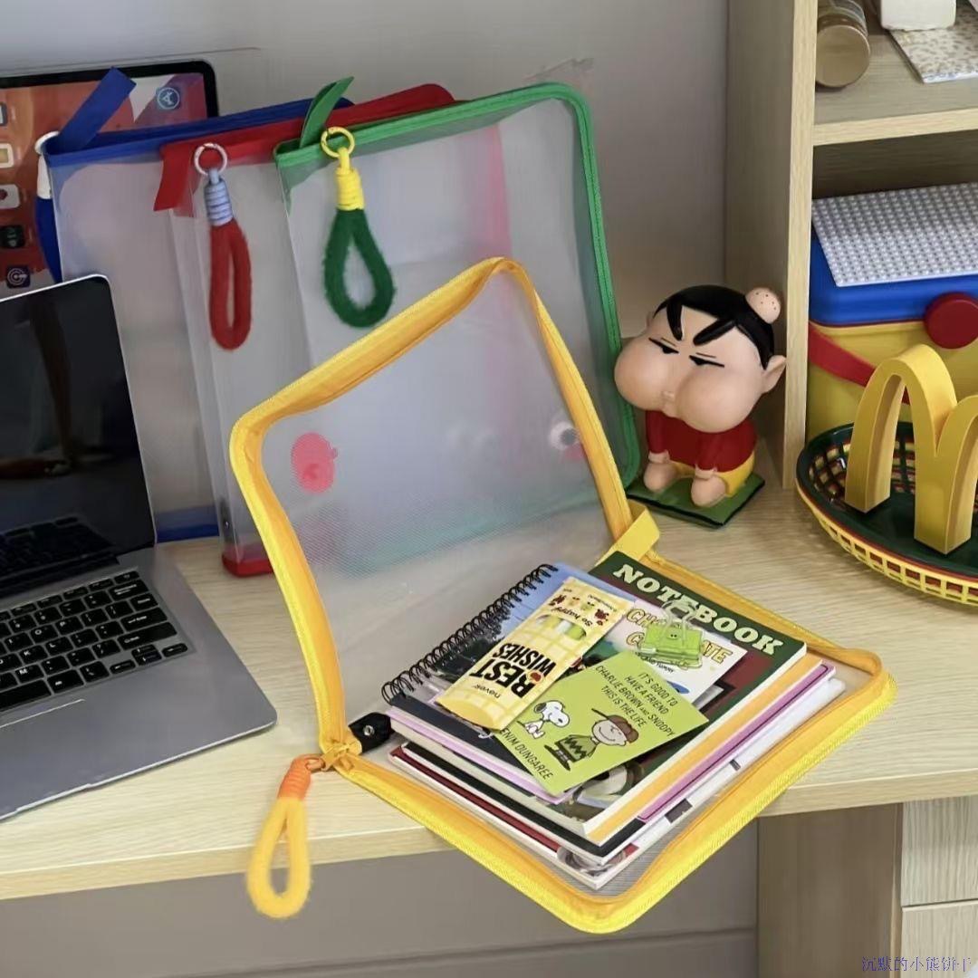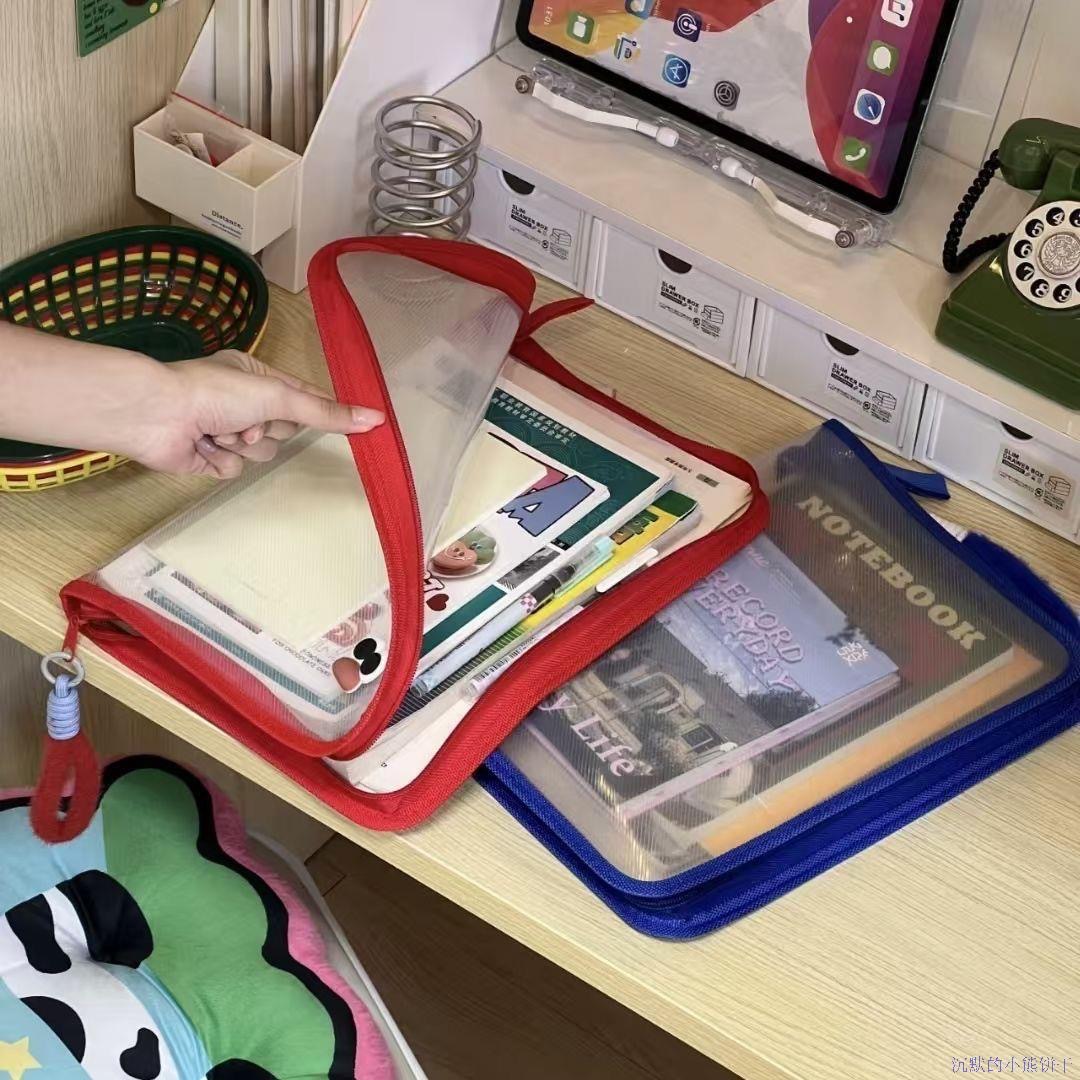 두껍고 확장 된 새로운 높은 색상 값 A4 파일 가방 투명 대용량 교과서 테스트 종이 잡화 저장 가방 지퍼 가방스토어 가기
