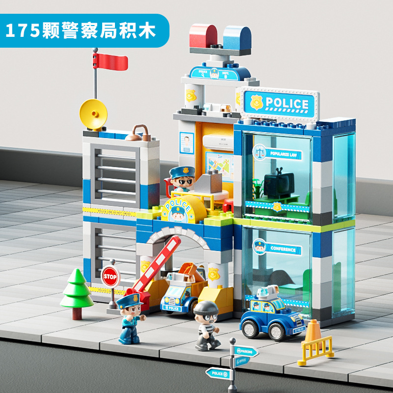 가짜 소방서 장면 시리즈 대형 입자 빌딩 블록 조립 창조적 인 DIY 퍼즐 빌딩 블록 놀이 집 장난감스토어 가기