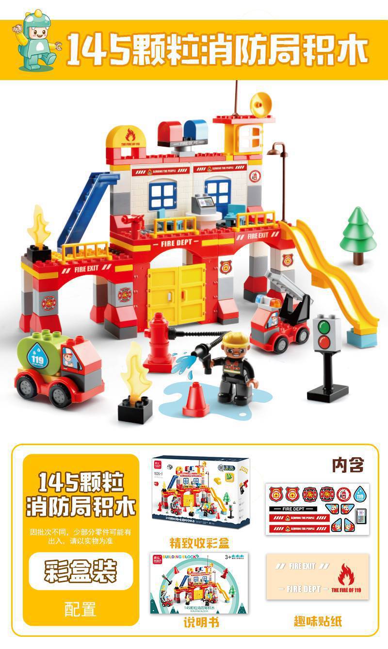 가짜 소방서 장면 시리즈 대형 입자 빌딩 블록 조립 창조적 인 DIY 퍼즐 빌딩 블록 놀이 집 장난감