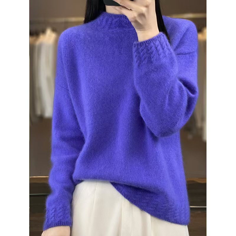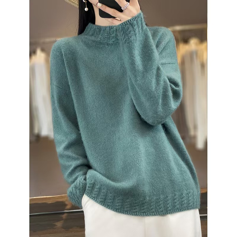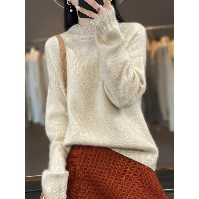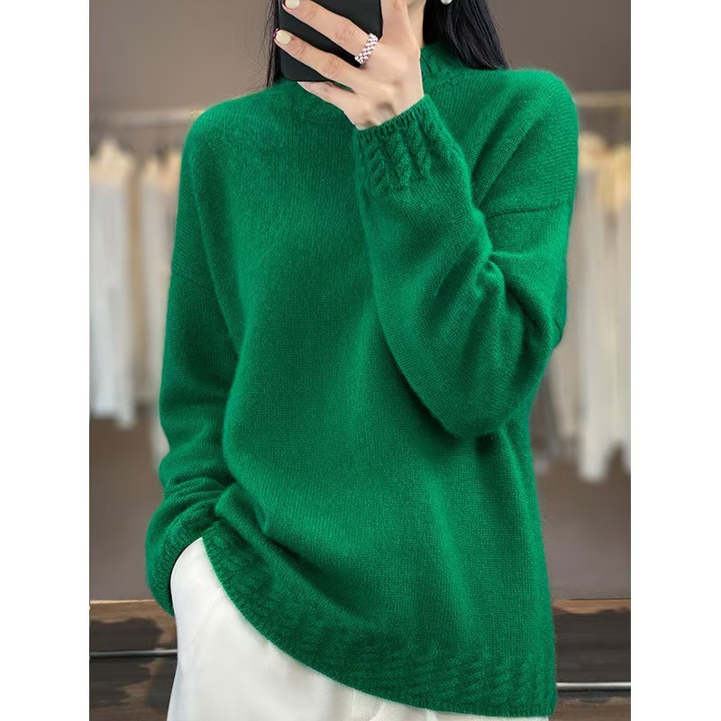 가을과 겨울 새로운 둥근 목 모직 스웨터 여성의 느슨한 반 터틀넥 스웨터 두꺼운 내부 풀오버 니트베이스 셔츠