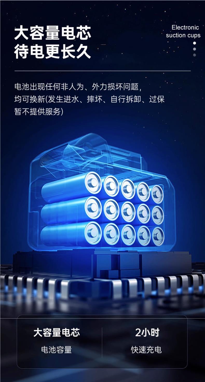 • 14cm 흡입 컵 디지털 디스플레이 2119 모델 12000 mAh(260cm 대형 벽돌) 배터리 1개 및 충전 1개