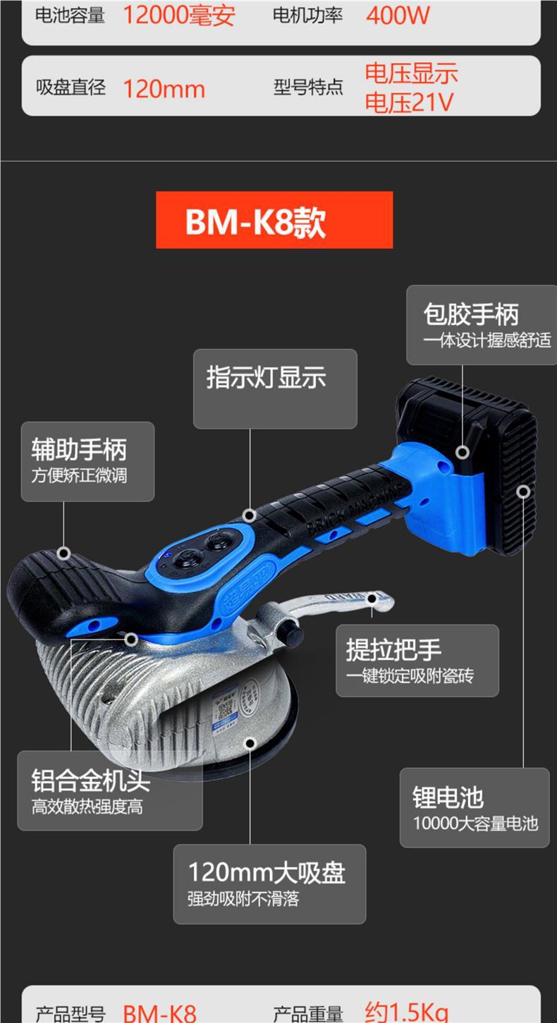 • 새로운 플래그십 모델 14cm 흡착컵 배터리 1개 12000mAh(내부 타일 260cm 부착)