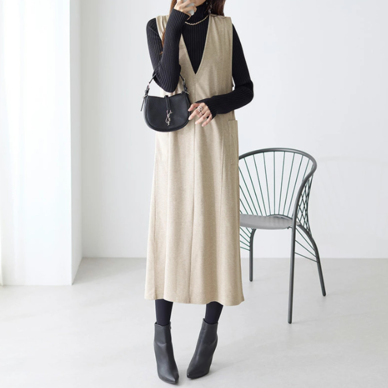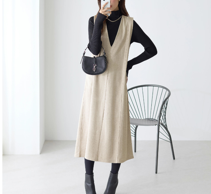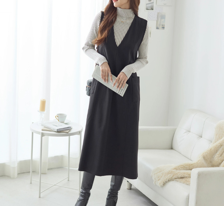 대외 무역 일본 롯데 한국 새로운 가을 겨울 400g 모직 깊은 V 조끼 원피스 모직 조끼