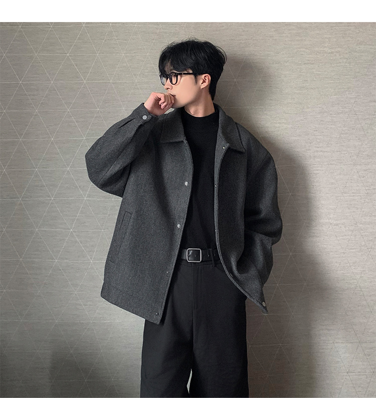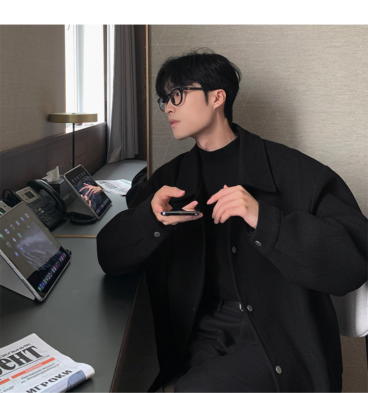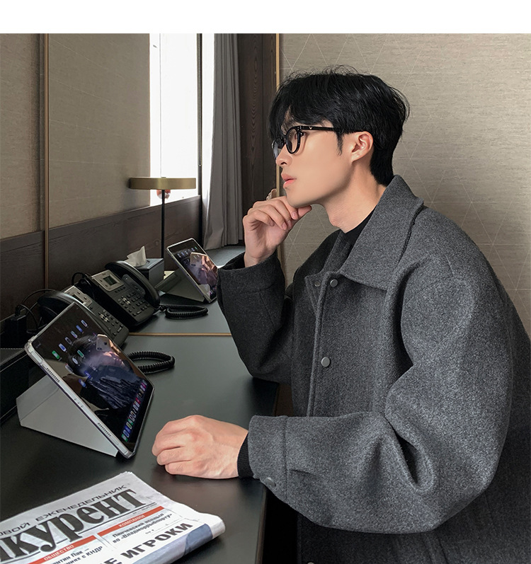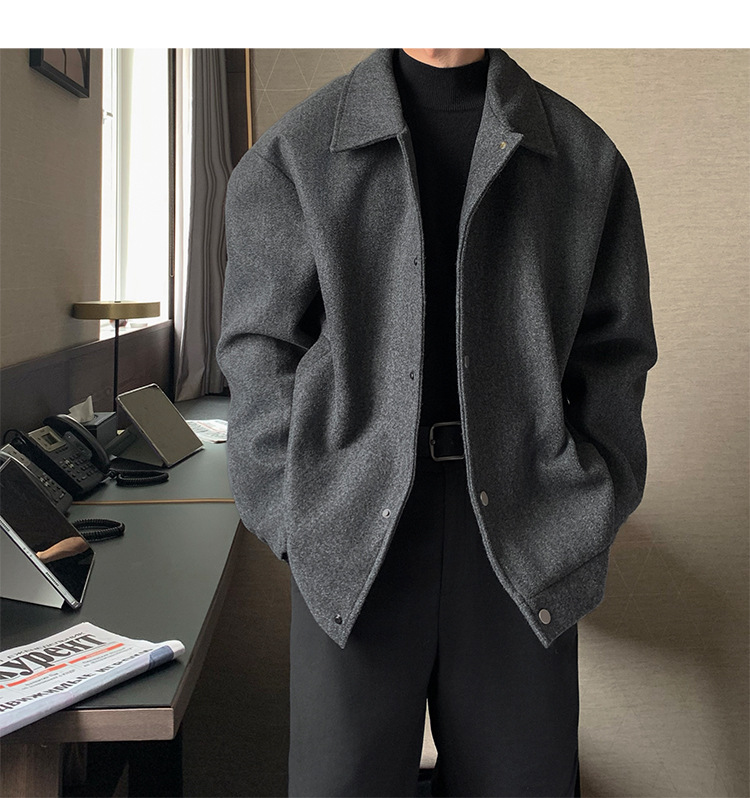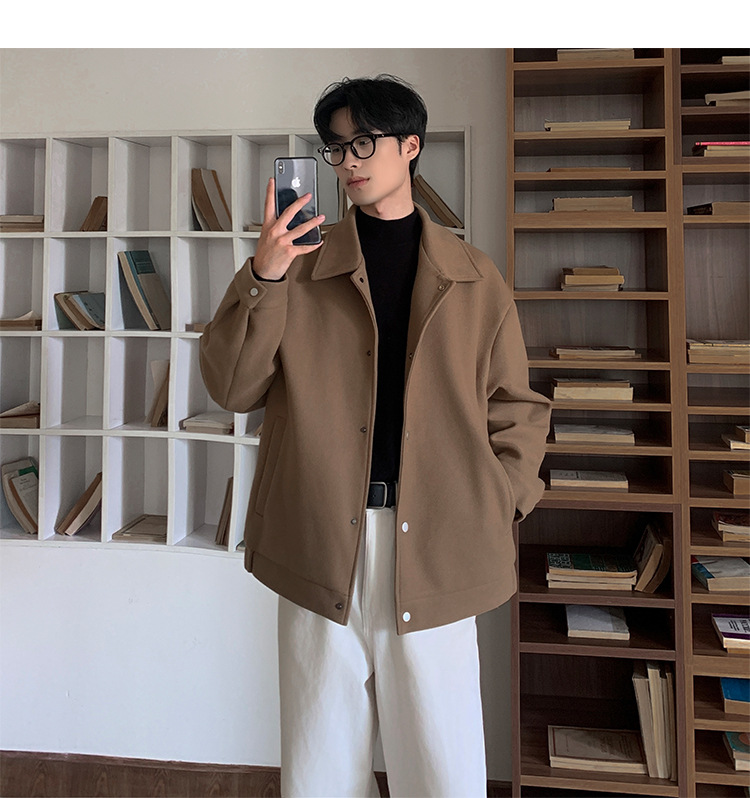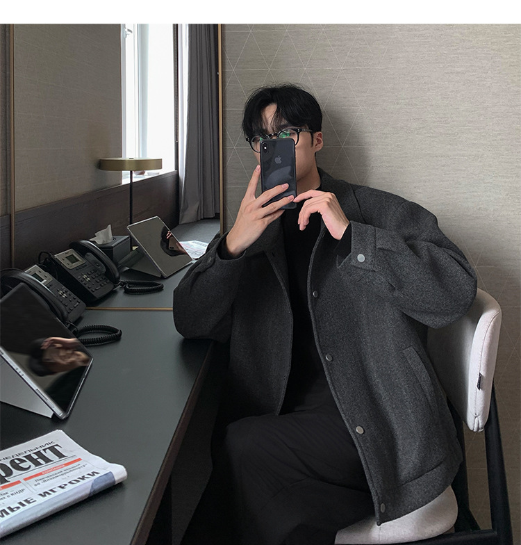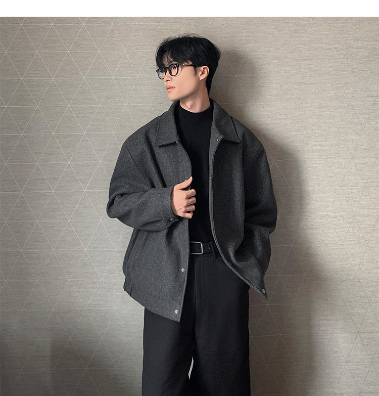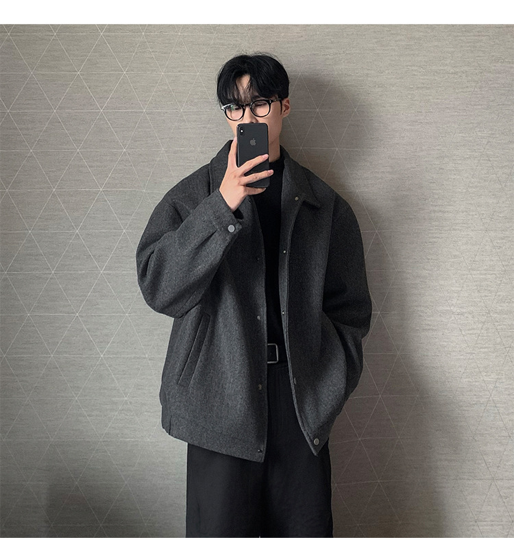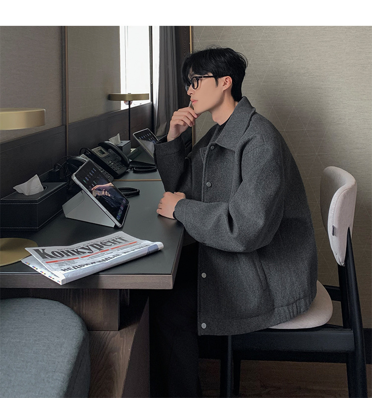 한국 스타일 옷깃 모직 재킷 남자 가을 겨울 새로운 유행 브랜드 Plutton 잘 생긴 두꺼운 짧은 자켓 남자 연인 옷스토어 가기