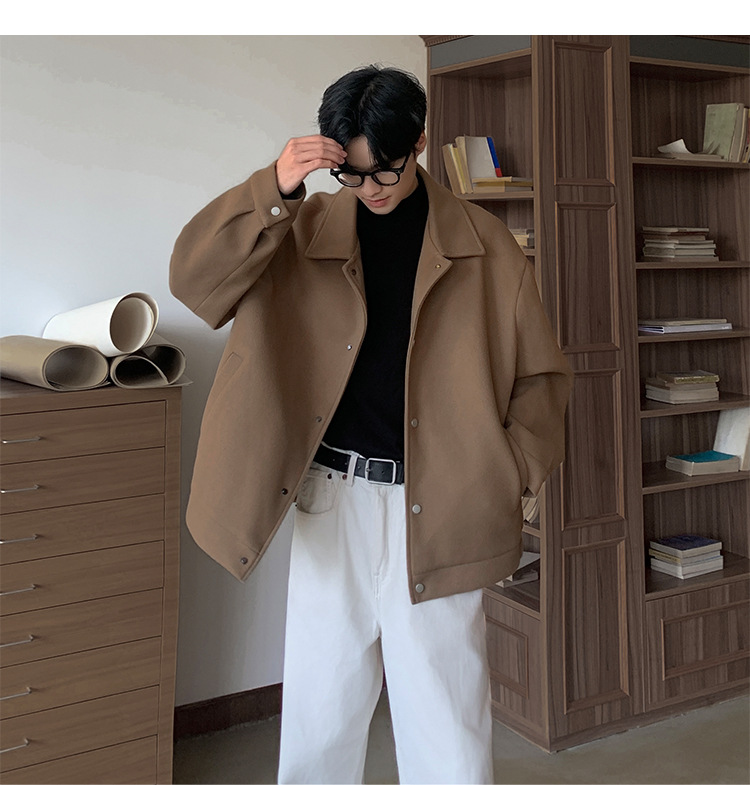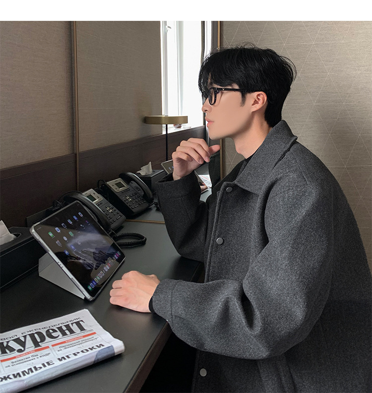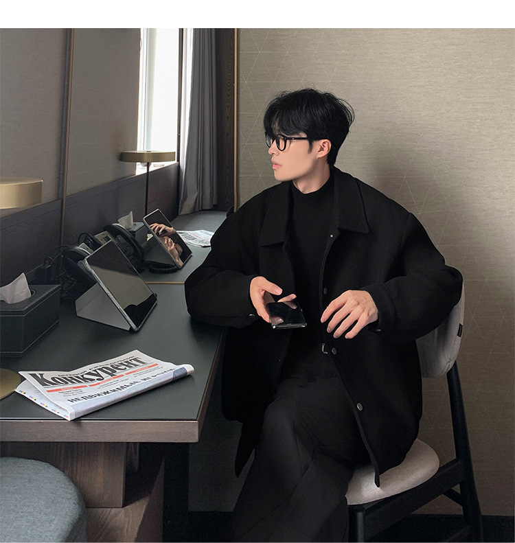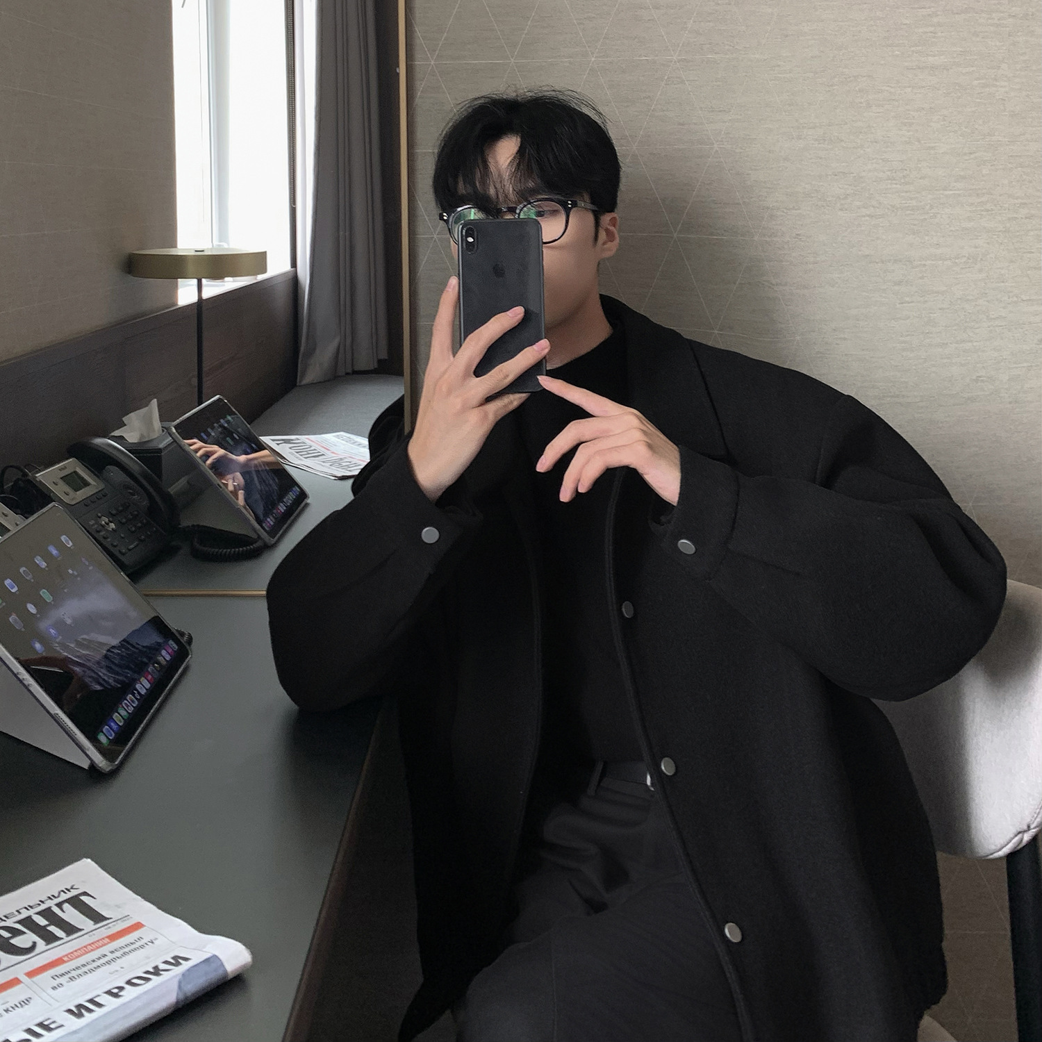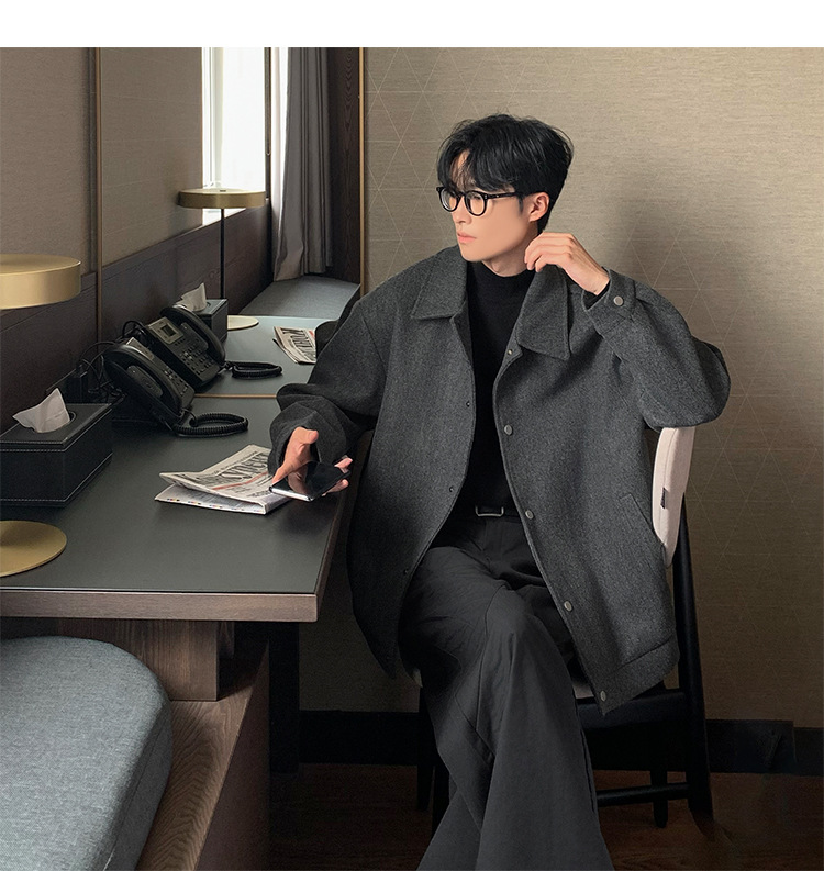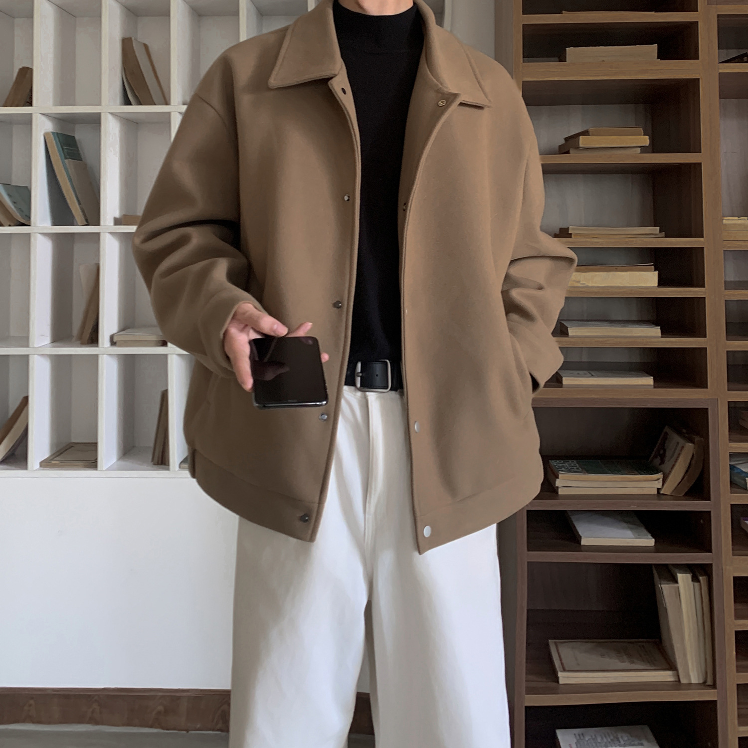 한국 스타일 옷깃 모직 재킷 남자 가을 겨울 새로운 유행 브랜드 Plutton 잘 생긴 두꺼운 짧은 자켓 남자 연인 옷스토어 가기