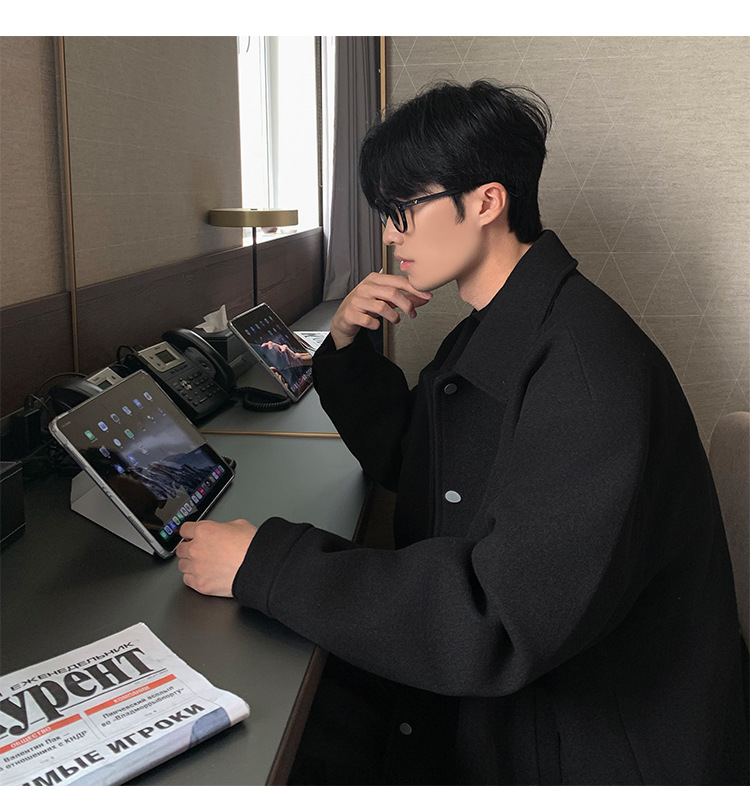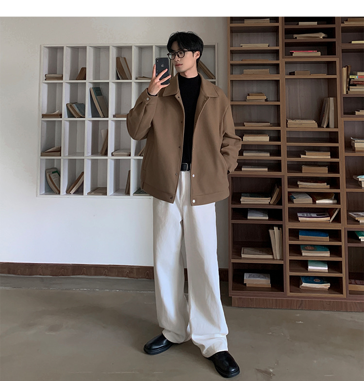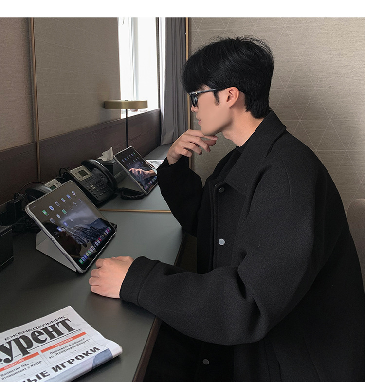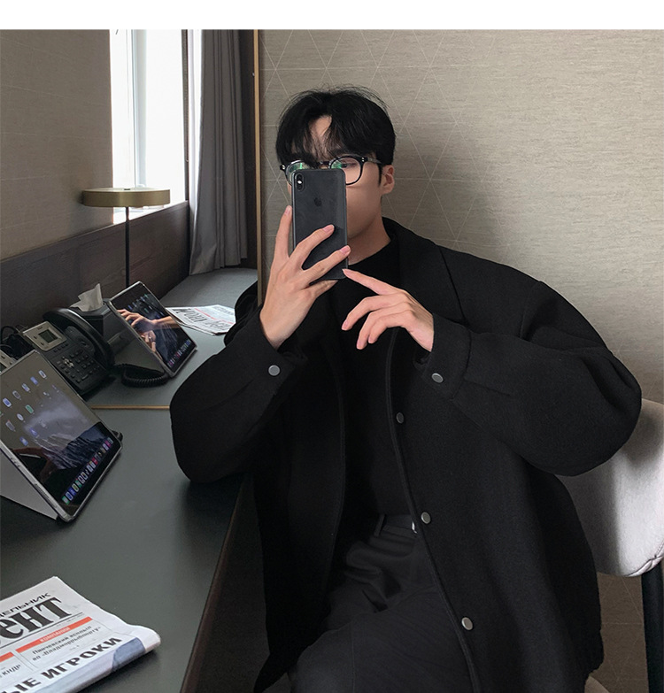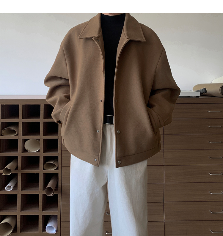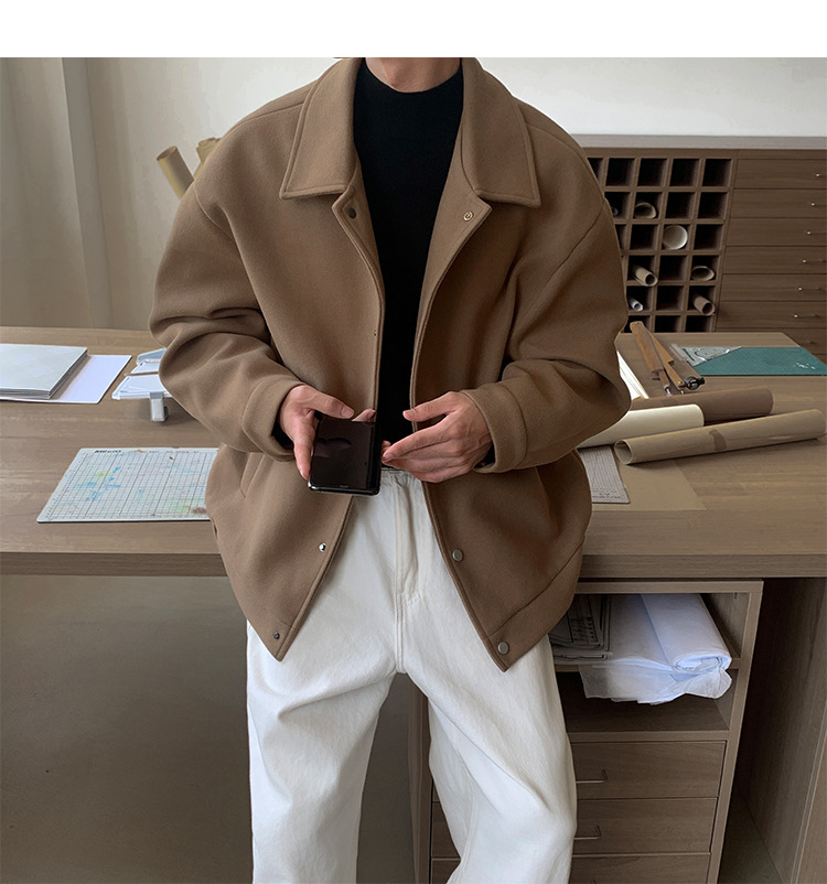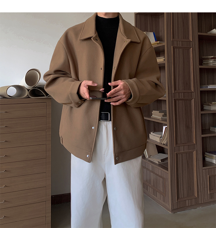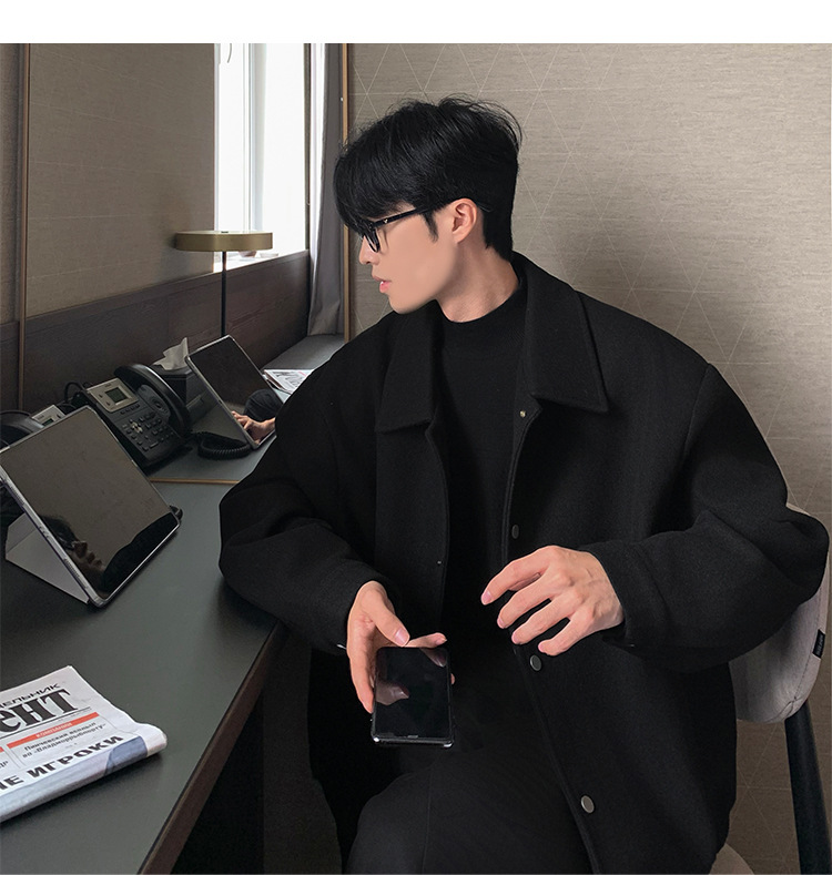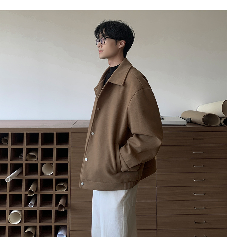 한국 스타일 옷깃 모직 재킷 남자 가을 겨울 새로운 유행 브랜드 Plutton 잘 생긴 두꺼운 짧은 자켓 남자 연인 옷스토어 가기